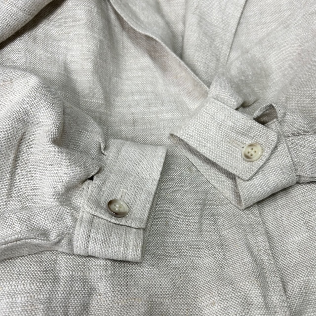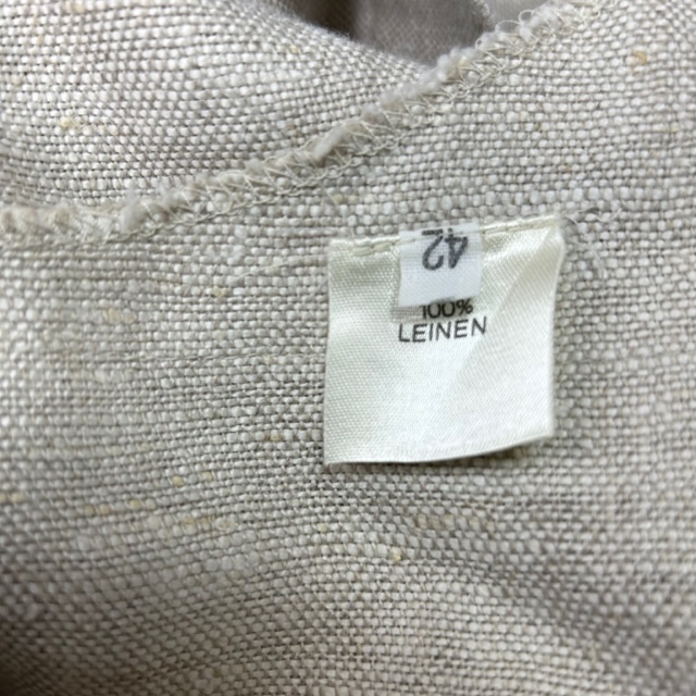 ●商品説明・・・ヨーロッパ古着になります。80年代~90年代頃のオールド・ヴィンテージのゆったり大きめなドレープ感の出るオーバーサイズシルエットのダブルブレストのブルゾンのようなリネンジャケットです。袖も太いドルマンスリーブで、8~9分袖程度の感じで、ハンドポケット付きです。リネン(麻)もラミー程度の繊維太めで、ネップ感のあるざっくりした質感の一着です。素材はリネン100%で、一枚生地です。色は無漂白の生成りで、薄いベージュのようなオーガニックな色合いです。サイズ表記は42で、ゆったり大きめなL~XL程度のサイズ感かと思います。
