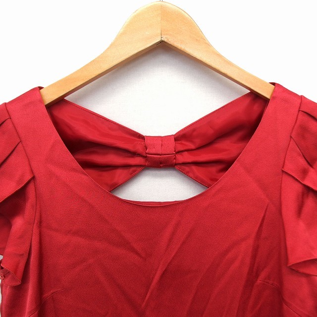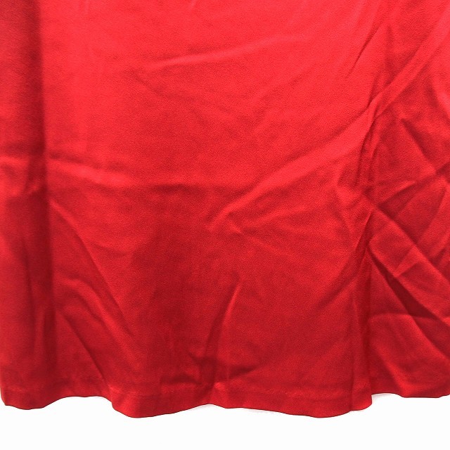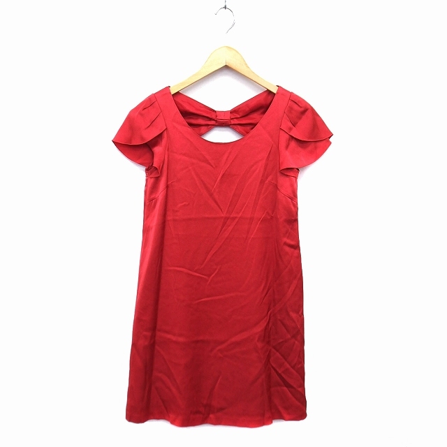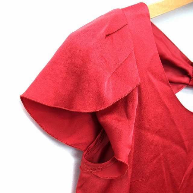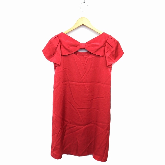 ストロベリーフィールズ STRAWBERRY-FIELDS ワンピース フレア ひざ丈 リボン 透け感 タック 無地 半袖 赤 レッド /NT14 レディース