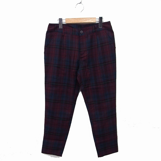 オリーブデオリーブ OLIVE des OLIVE チェック柄 テーパードパンツ タック M レッド 赤 ネイビー 紺 /FT21 レディース