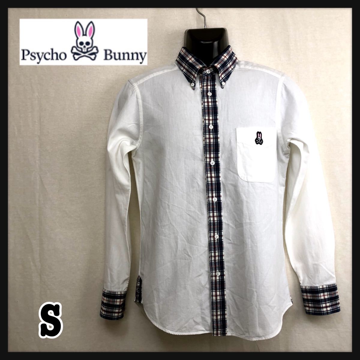 即決★Phycho Bunny★サイコバニー★メンズ★S★長袖シャツ★ボタンダウン★スカルバニー★ワッペン★高品質★オススメ