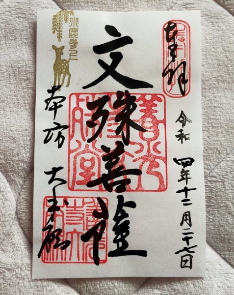 ◆信濃善光寺(信州善光寺・長野善光寺)(長野)◆ [大本願]御朱印「文殊菩薩」 令和4年(2022年)12月 |