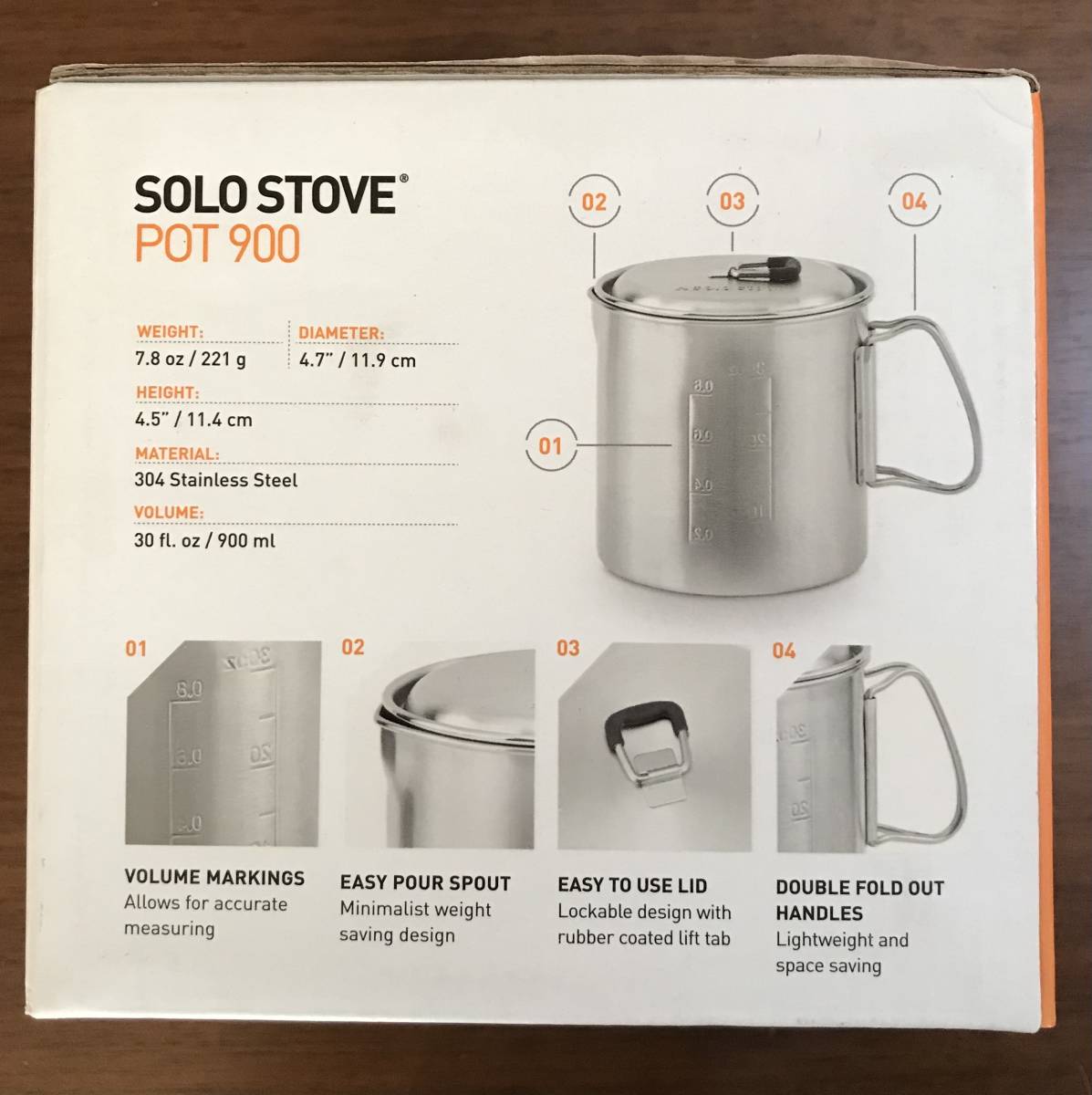 [ 新品・未使用品 ] アメリカからの並行輸入品になります。荷物を受け取った時点で 外箱に送り状のシールの 跡があった為に新品での出品を諦めた商品です。 中を確かめる為に 一度 箱を開けて ポットに触れましたが その後 直ぐに戻して保管しています。 材質:ステンレススチール サイズ:高さ/約11.5cm、直径(幅)/約11.9cm 重量:約220g 容量:900ml 内容:本体、フタ、収納袋 solo stove社 の ソロ ストーブとの相性抜群です。 キャンプ・ハイキング・サバイバル・防災 等様々なシーンで活躍します。