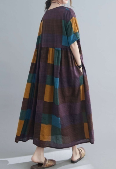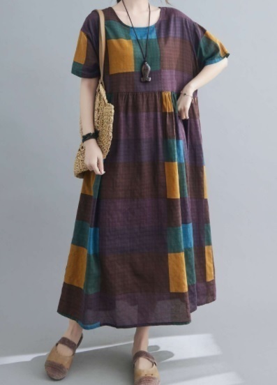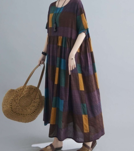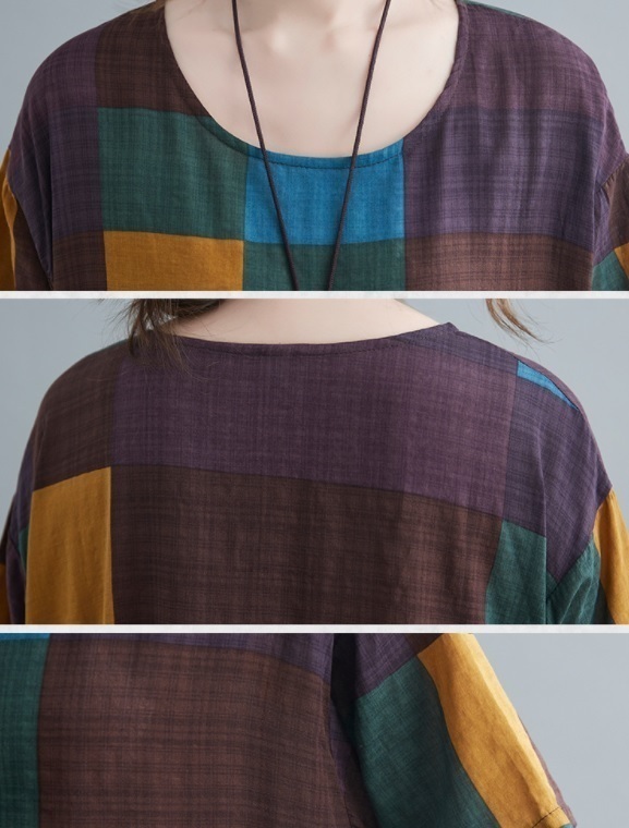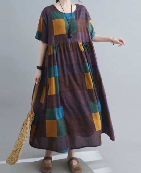 H917★ノスタルジックな色合いがおしゃれ大きいサイズタイル柄プリント半袖 ロングスカート