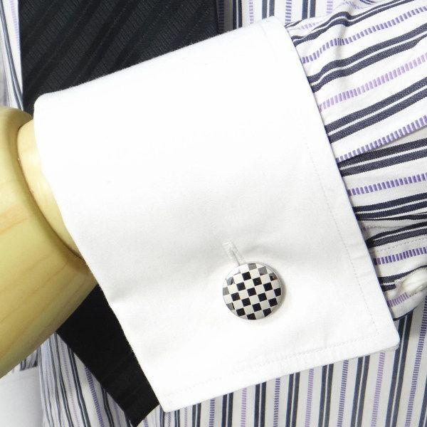 艶あり&艶なしシルバーの小さなチェックがキラリと輝くカフス。