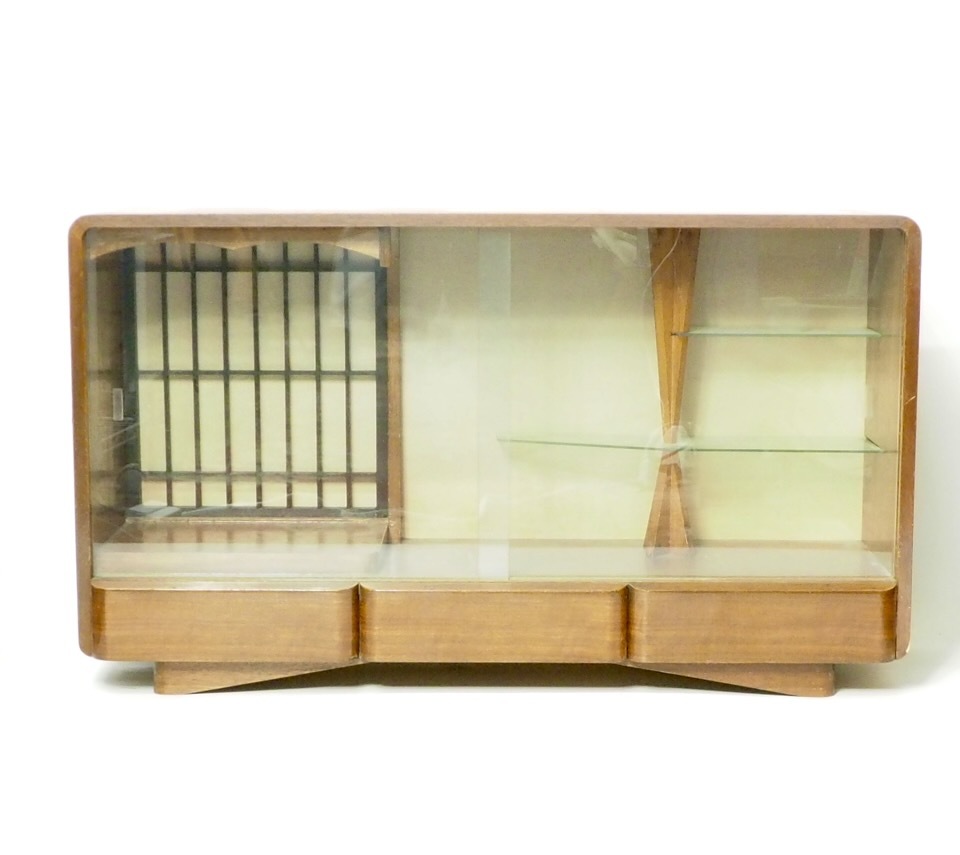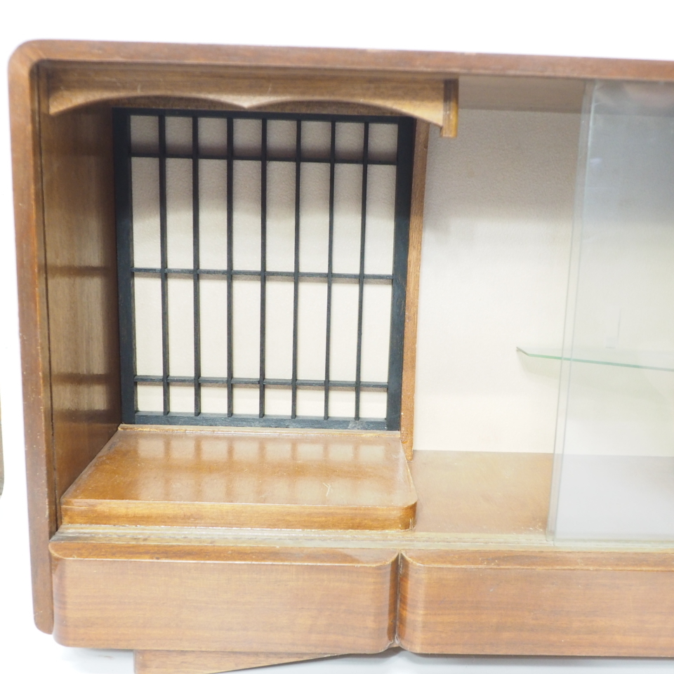 昭和ビンテージ 木製味わいガラス付き飾り戸棚