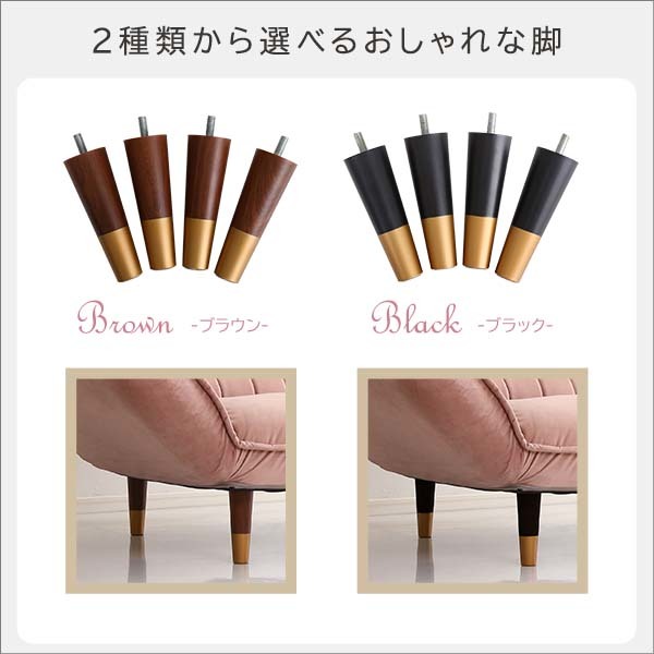 大人かわいいインテリア ベロアカウチソファ 2人掛け+オットマンセット Chammy -チャミー- グレー&ブラック