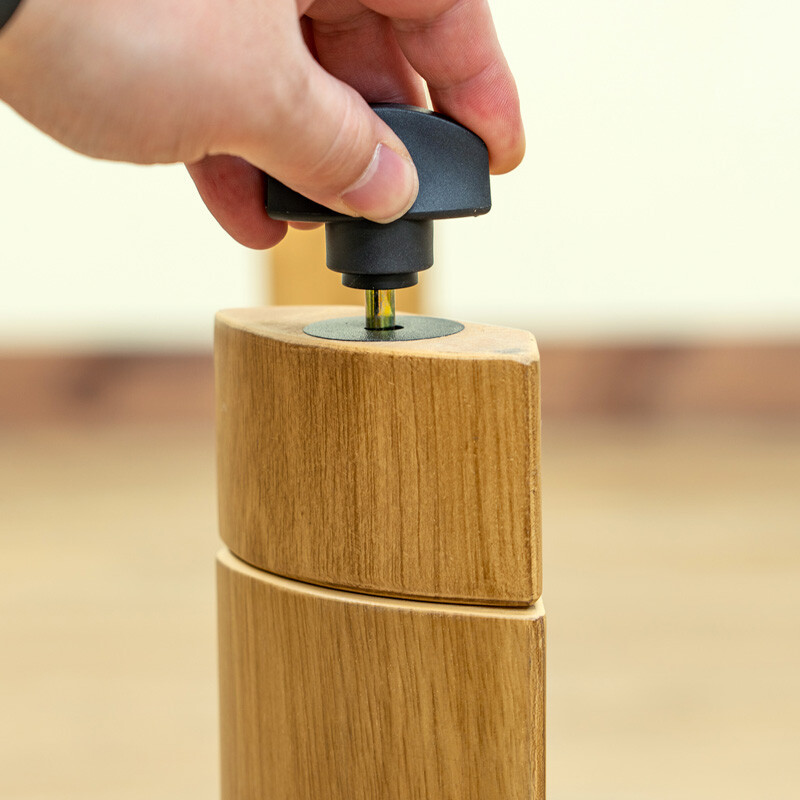夏場等、テーブルとして使用する時に天板を固定できる天板止めネジ付きです