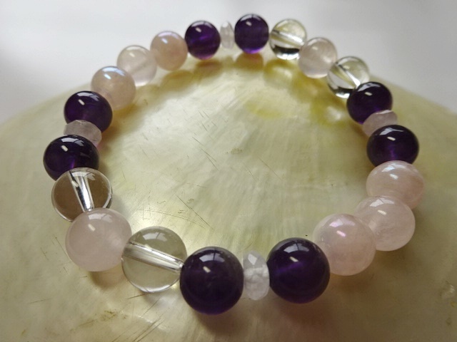 パワーストーンブレスレッド ローズクォーツ・アメジスト・水晶他<愛を育む>内径16㎝ 西069