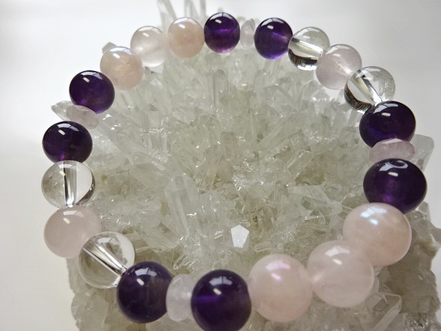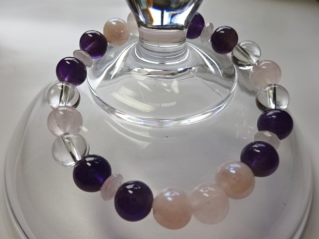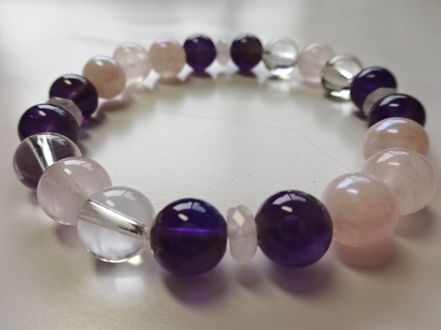 構成:ローズクォーツ8㎜8粒 アメジスト8㎜8粒 水晶8㎜4粒 ローズクォーツボタンカット4粒