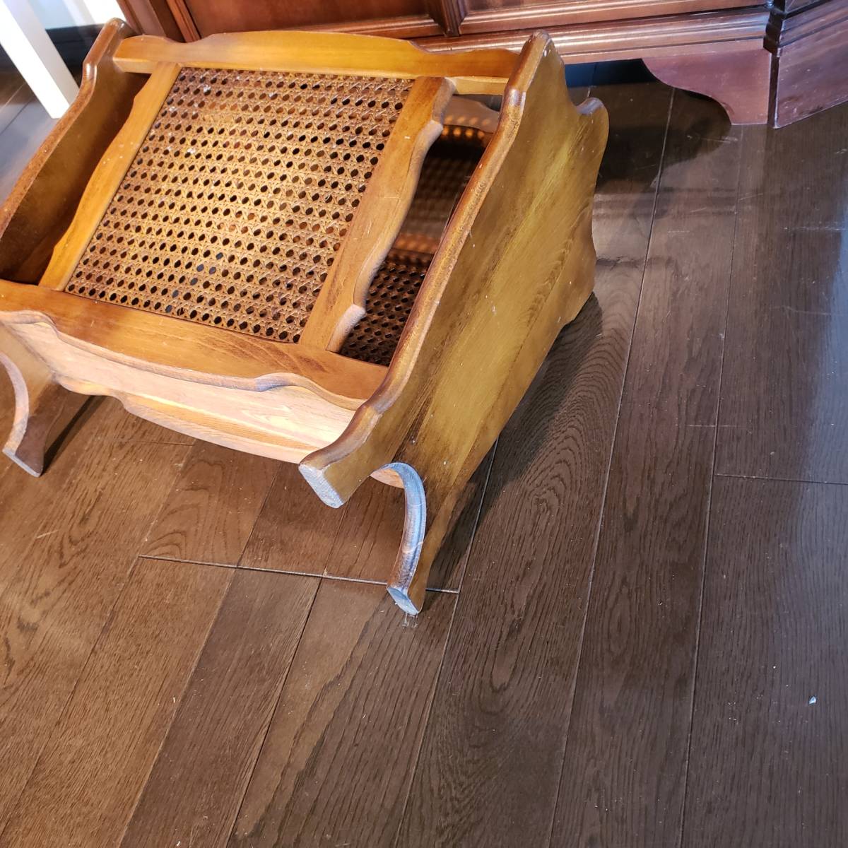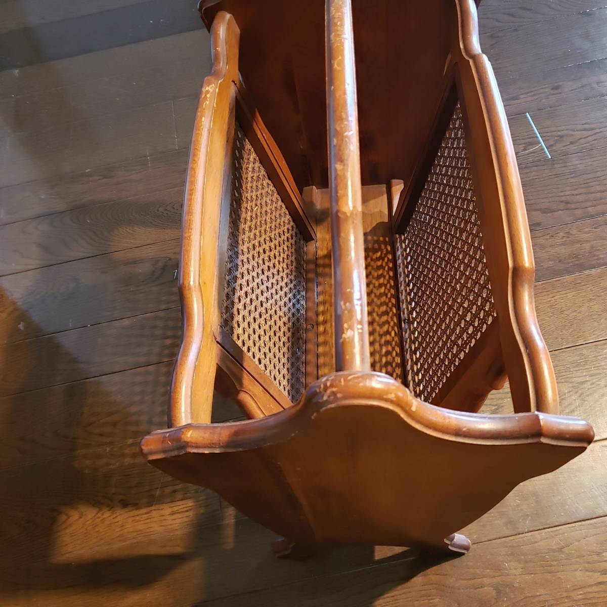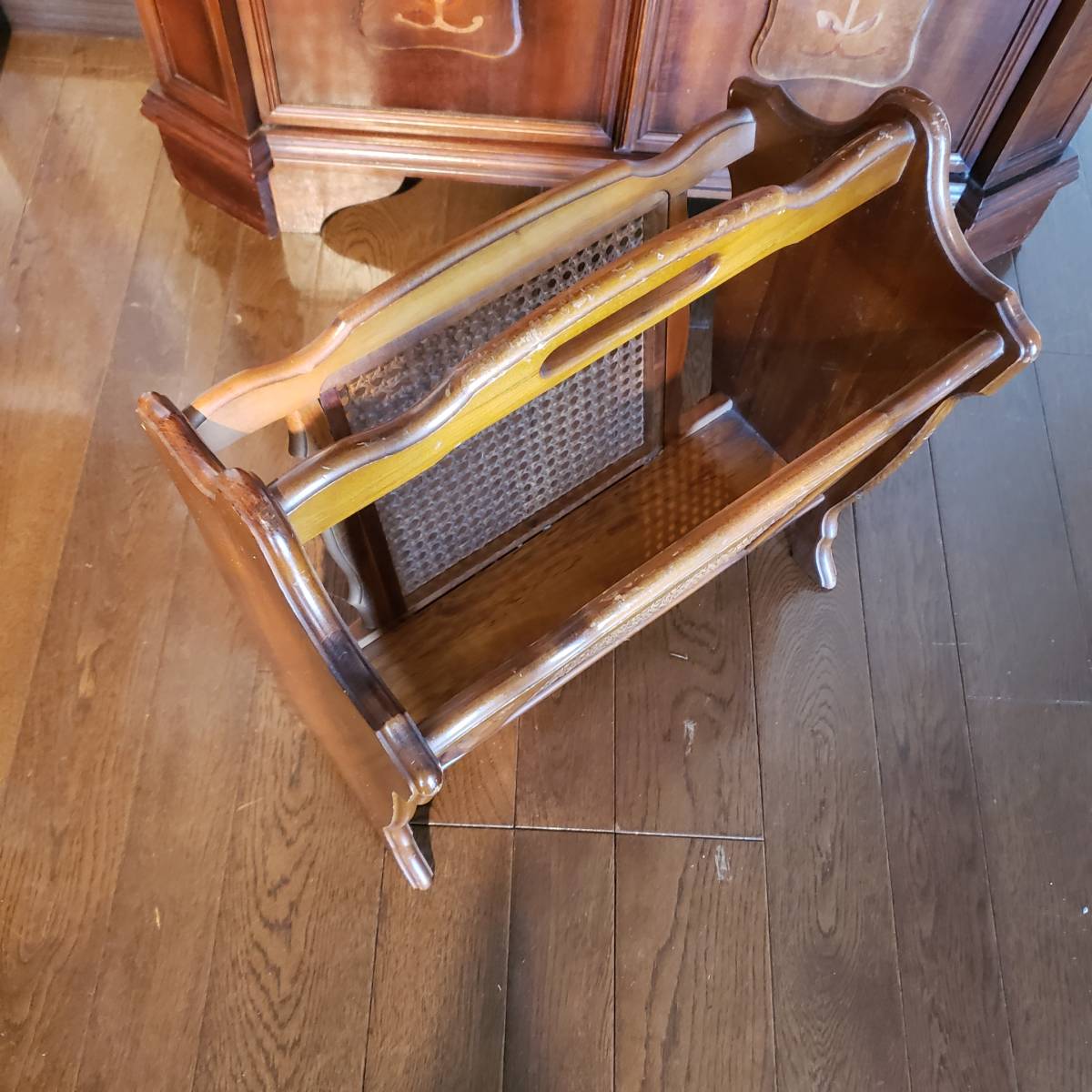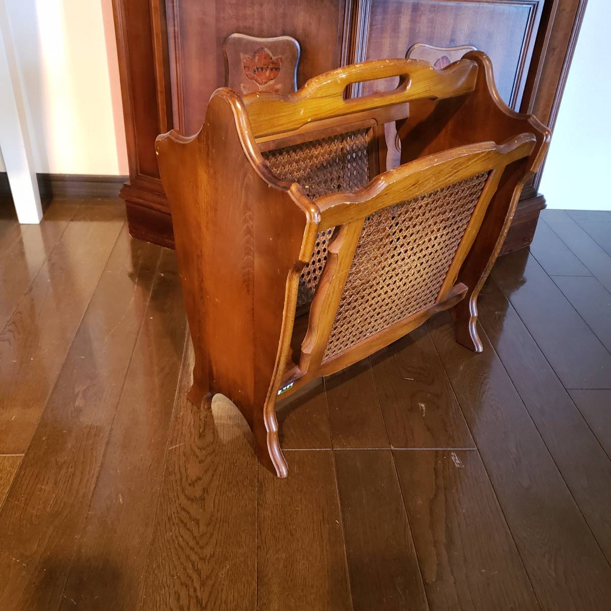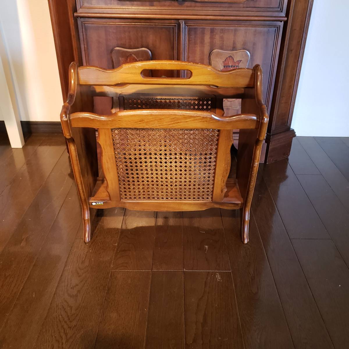 H-242 オールド カリモク マガジンラック 木製ブナ材無垢 籐編みの 廃盤品 コロニアルシリーズ ヴィンテージカリモク サイズ