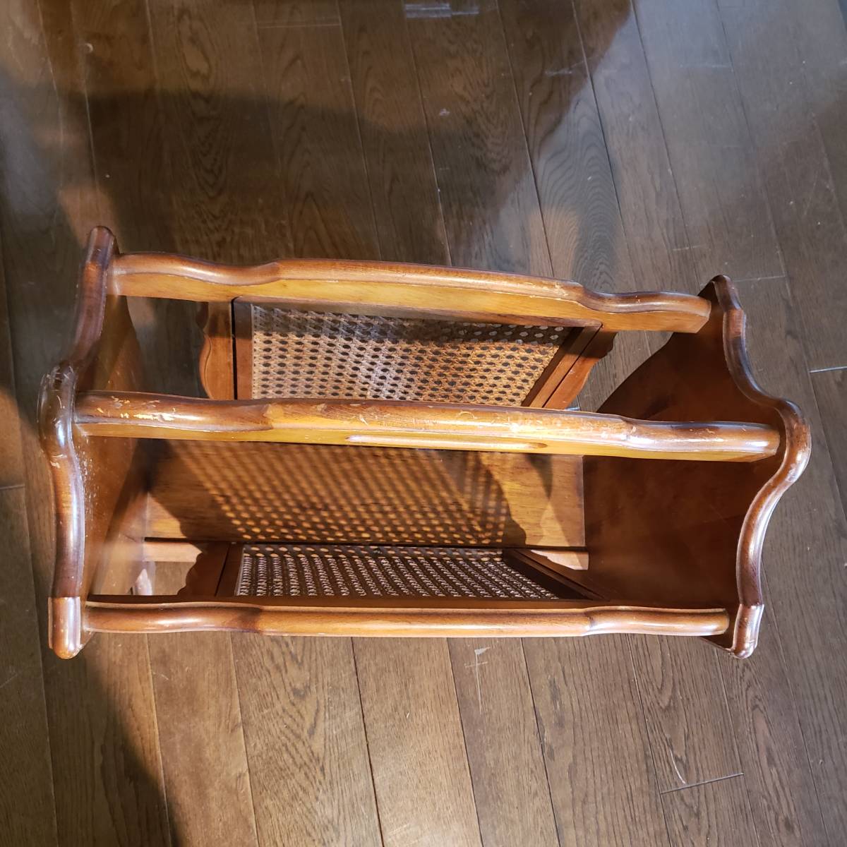 オールド カリモク マガジンラック 木製ブナ材無垢+籐編みのWラック 廃盤品 コロニアルシリーズ ヴィンテージカリ