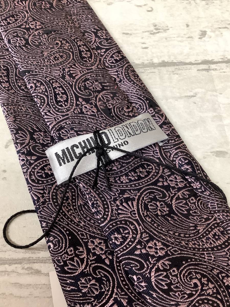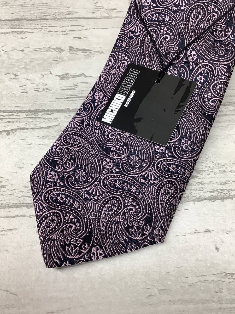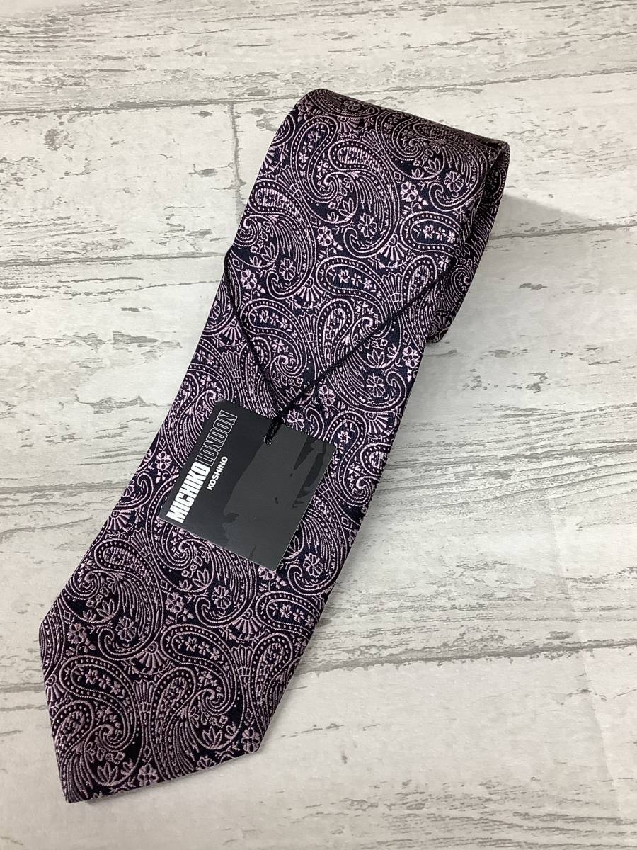 新品未使用★ミチコロンドン★日本製レトロネクタイ ★ペイズリー生地 黒ピンク シルク100%のお買い得サービス