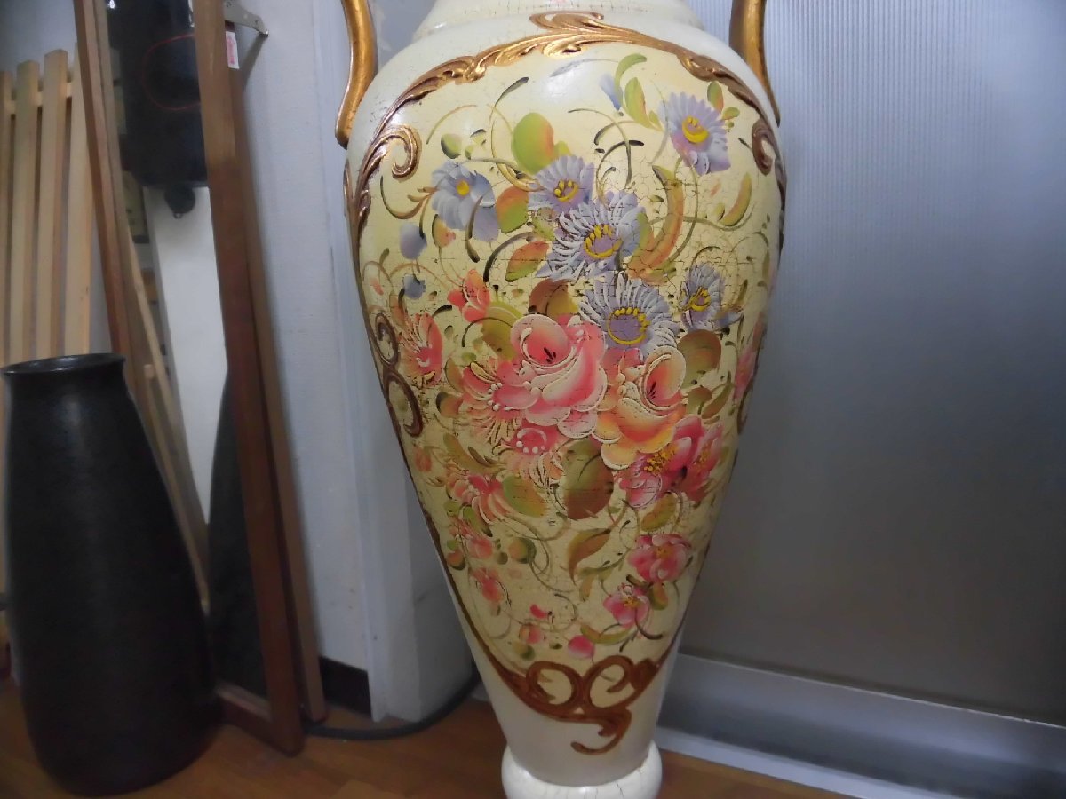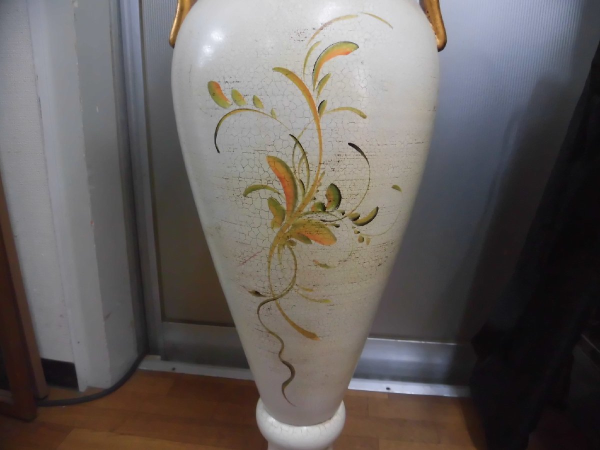 イタリア製の特大花瓶になります。 目立つカケはございませんが小傷、擦り傷ございます。 【サイズ】 直径 24.8cm 高さ 93.4cm 写っているものが全てです。 状態も含めて写真にてご確認下さい。 | ||||