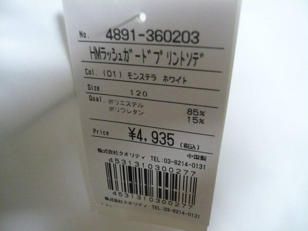 ⑥⑥新品★HMラッシュガード モンステラホワイト 120サイズ 定価4935円