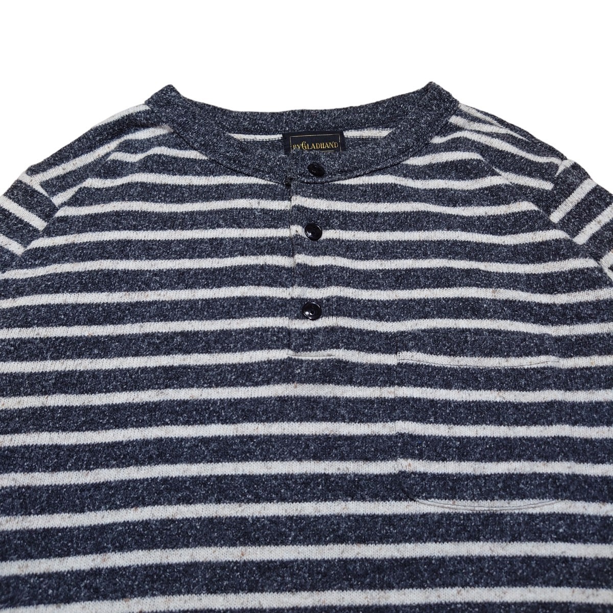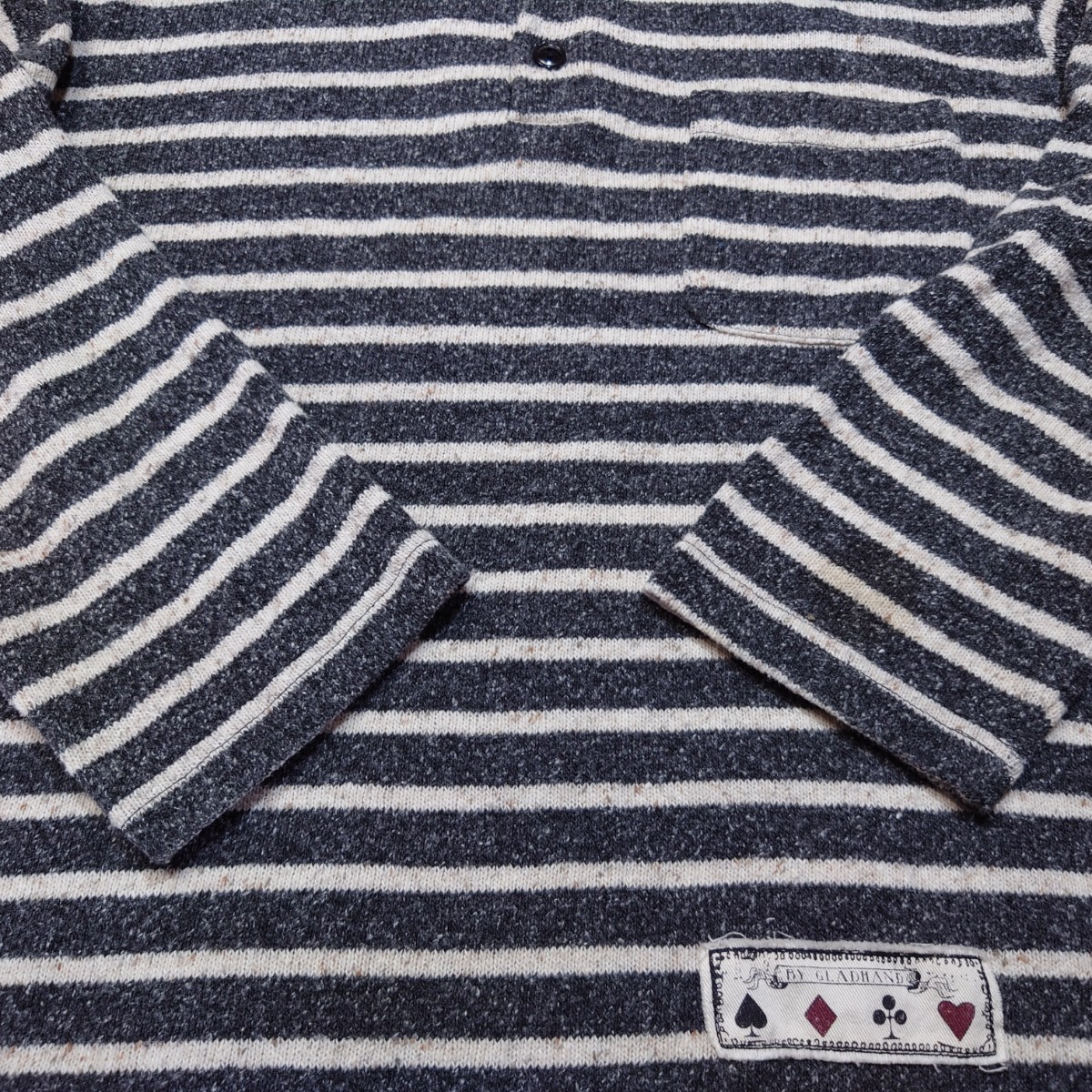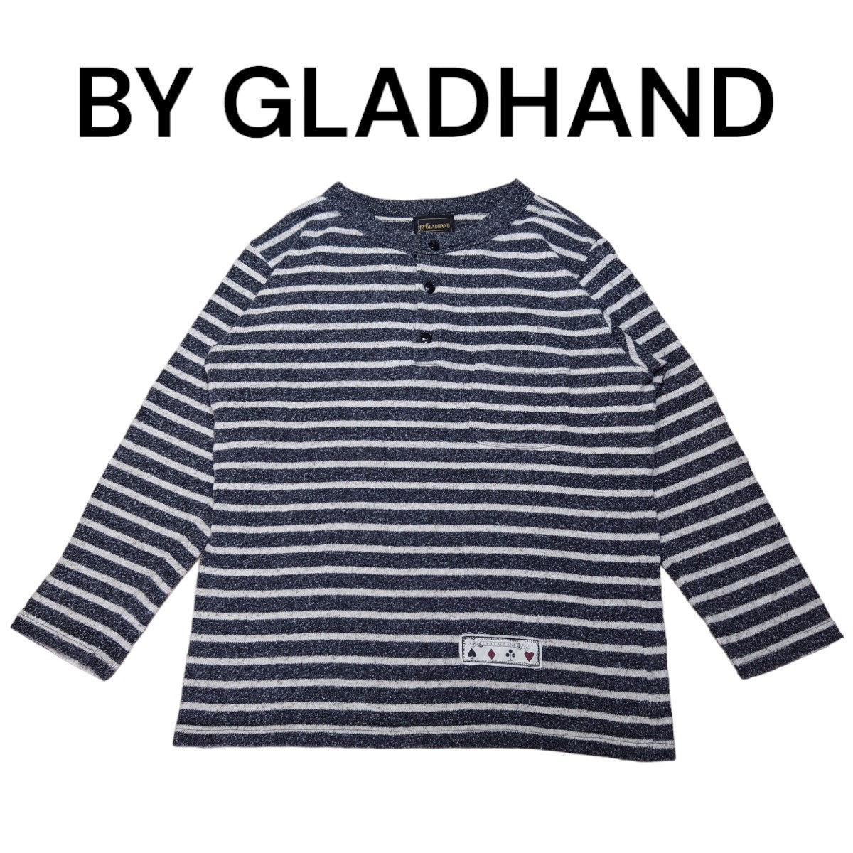 BY GLADHAND パイル地 ボーダー ビッグプリント ヘンリーネックロンT グラッドハンド