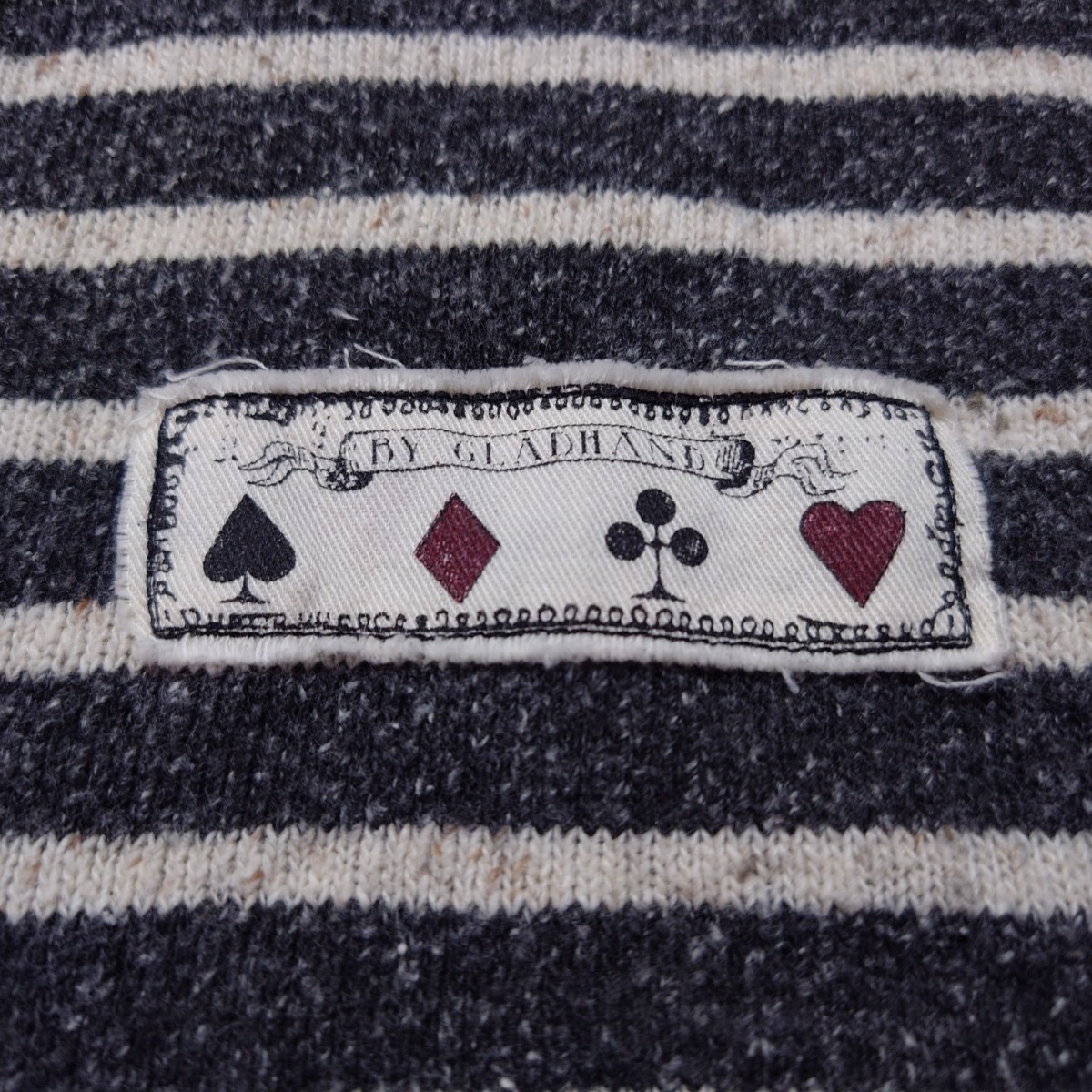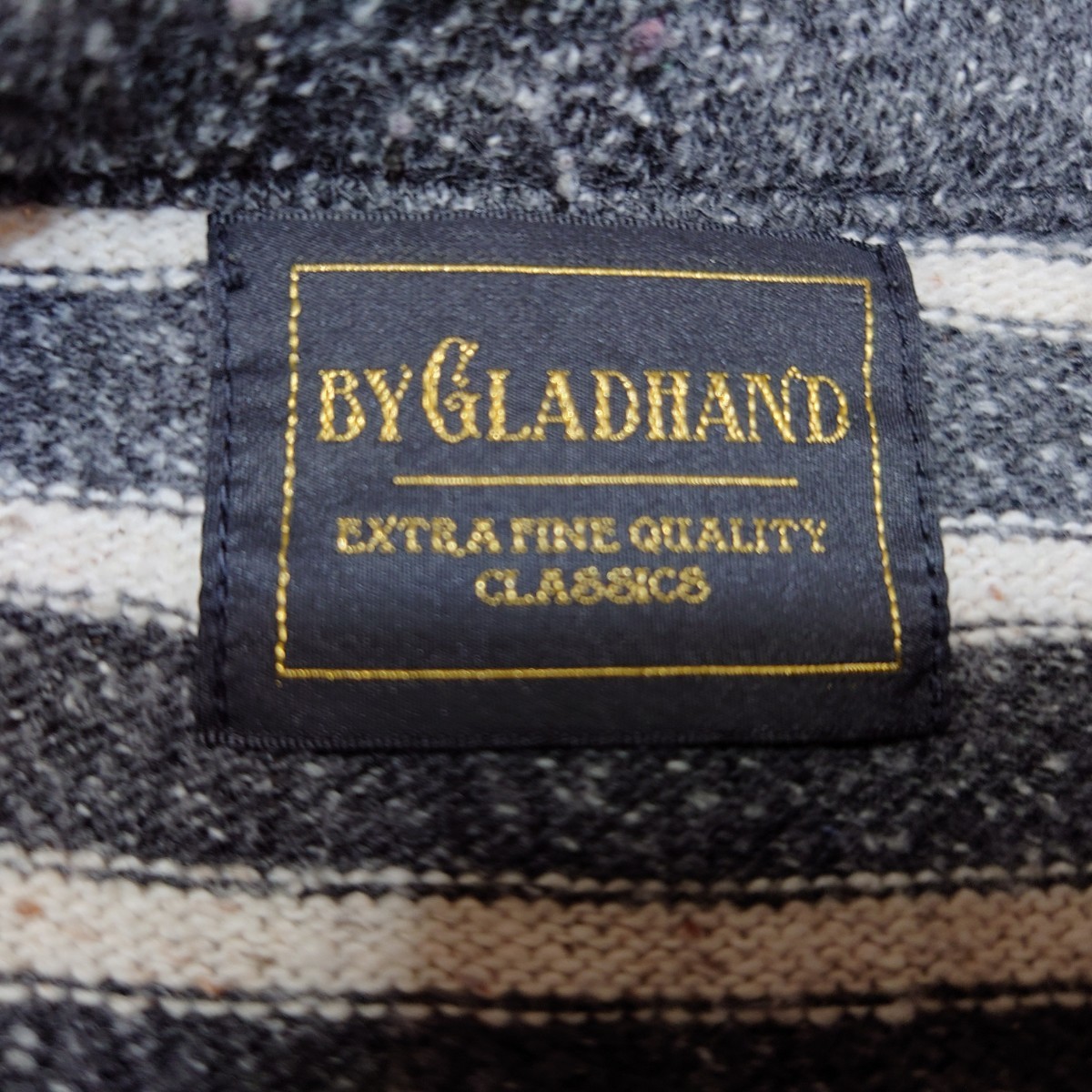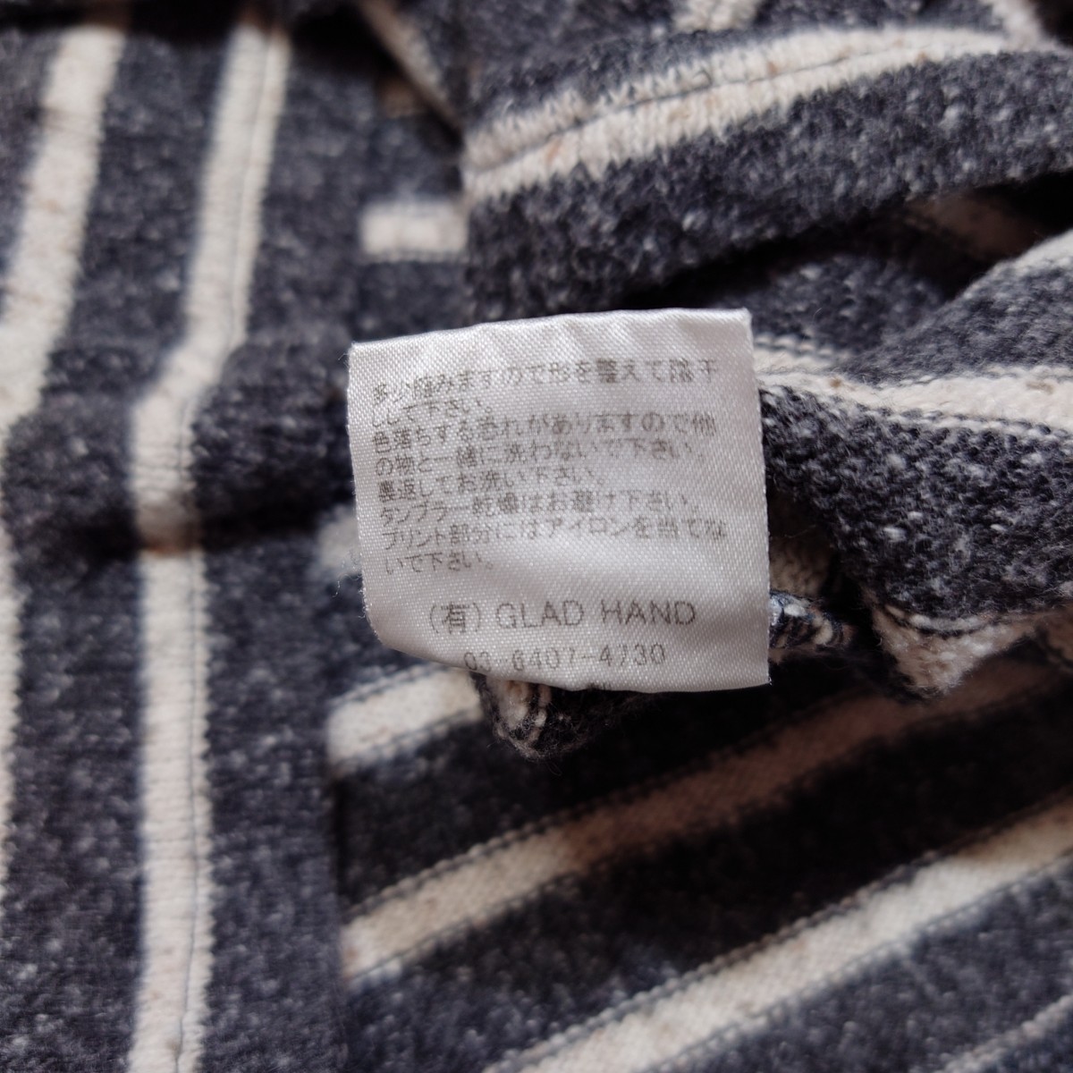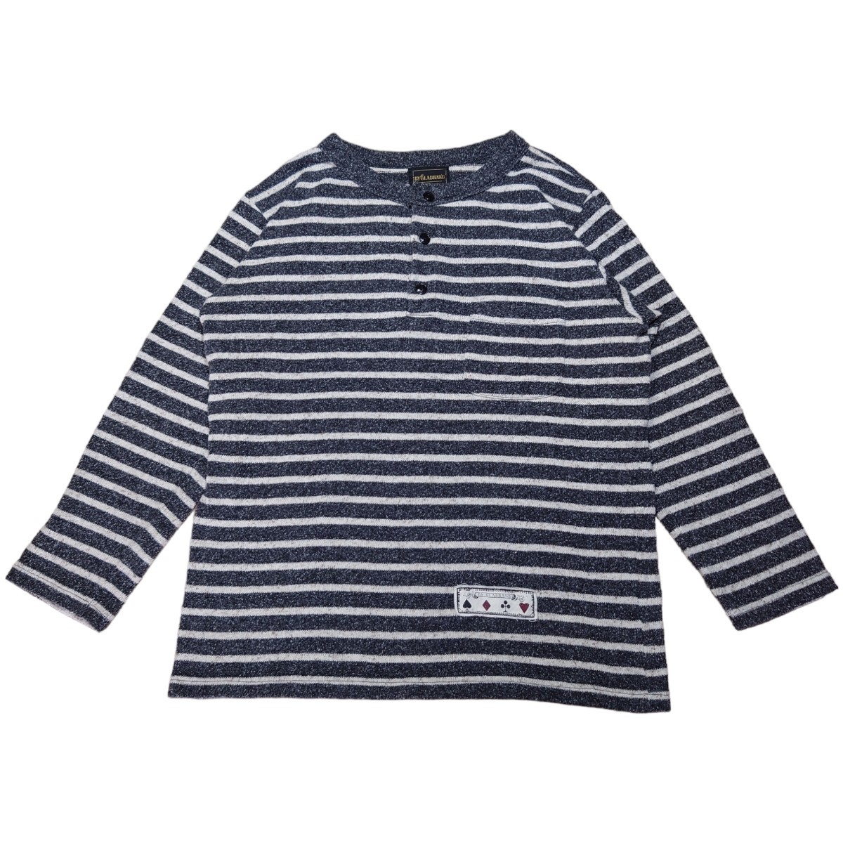 BY GLADHAND パイル地 ボーダー ビッグプリント ヘンリーネックロンT グラッドハンド