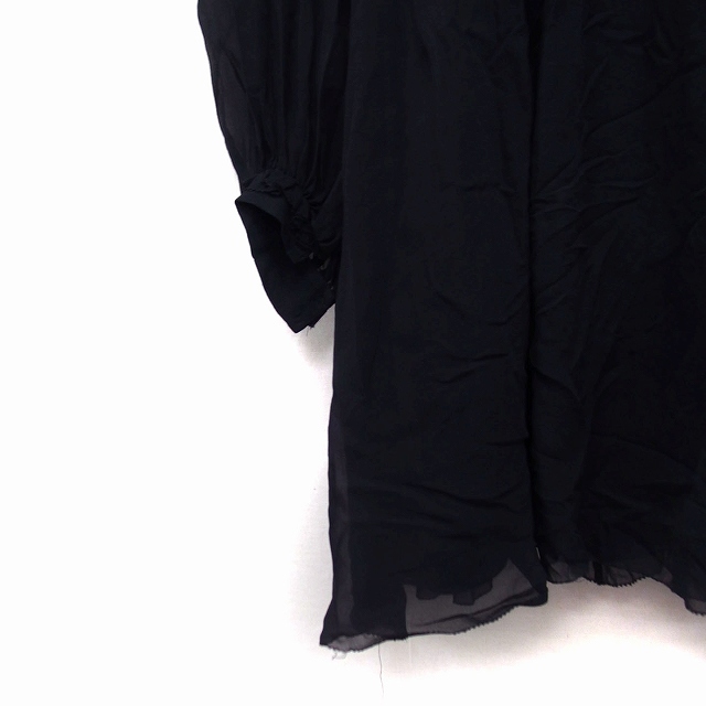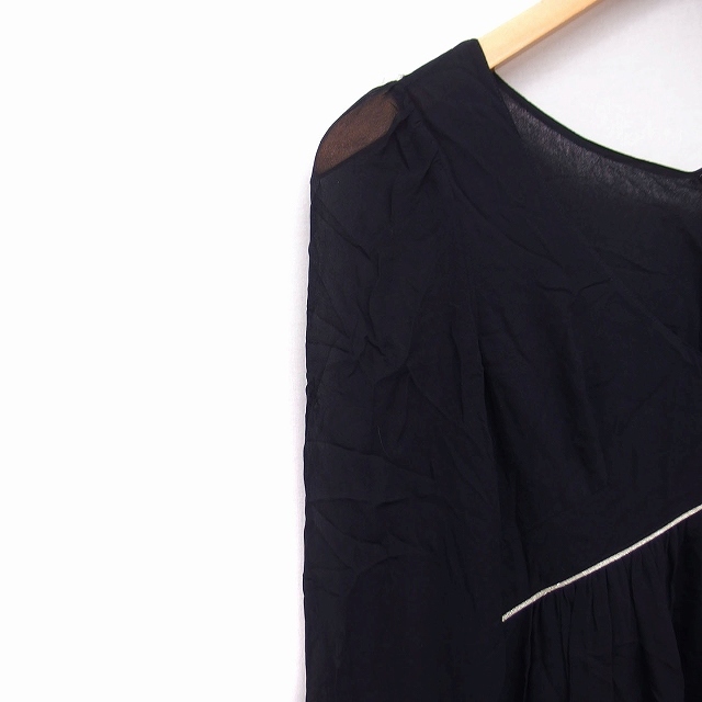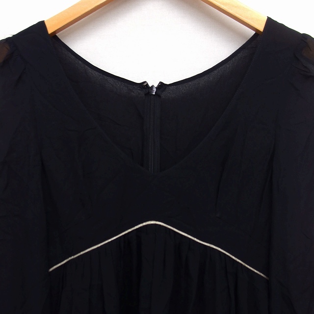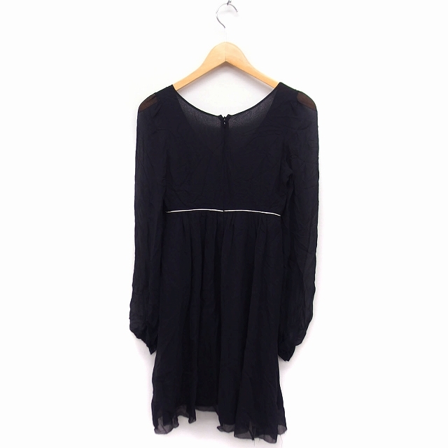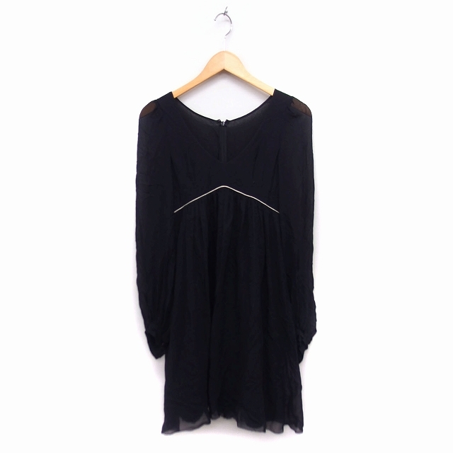 ジルスチュアート JILL STUART シルク ワンピース フレア Vネック 長袖 ひざ丈 透け感 0 ブラック 黒 /FT11 レディース