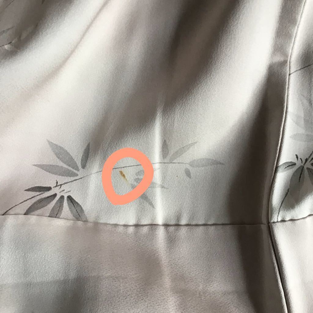 ②おはしょりや帯で見えなくなりますが、後ろの左身頃の腰付近にシミが出来ています。