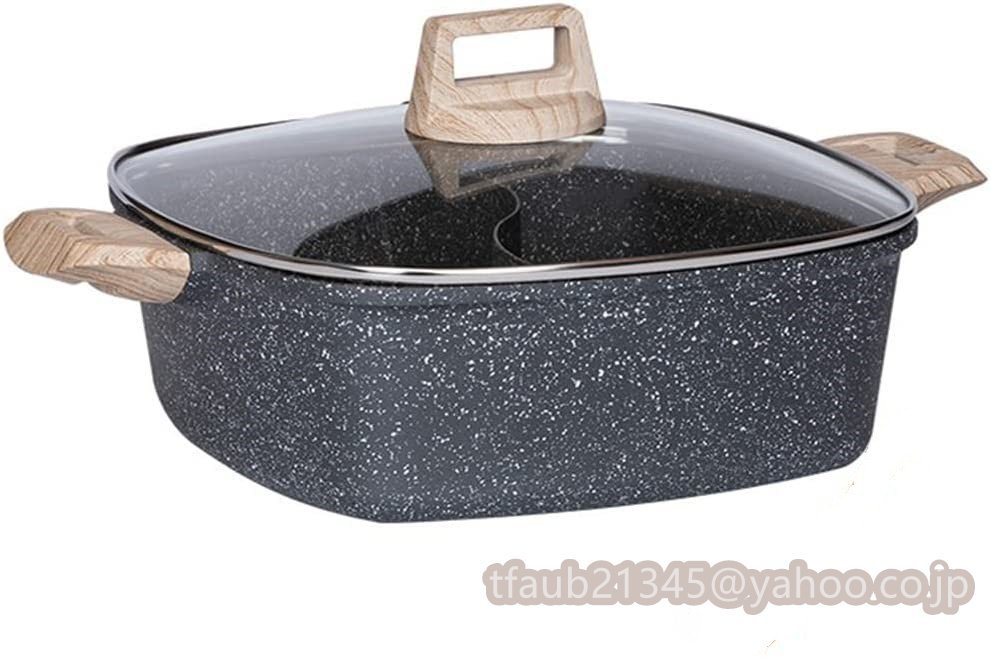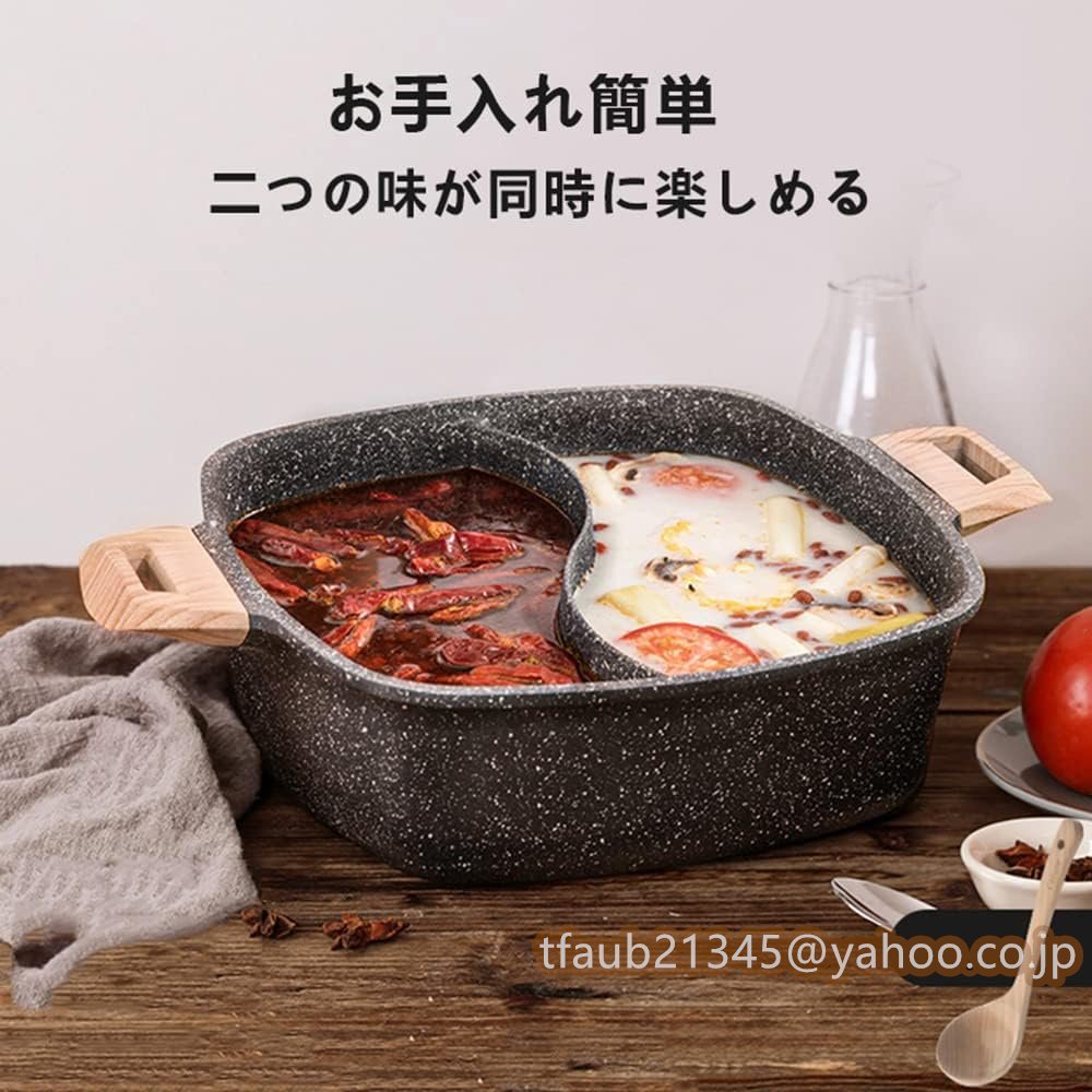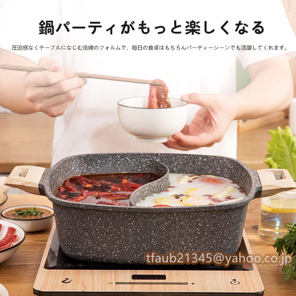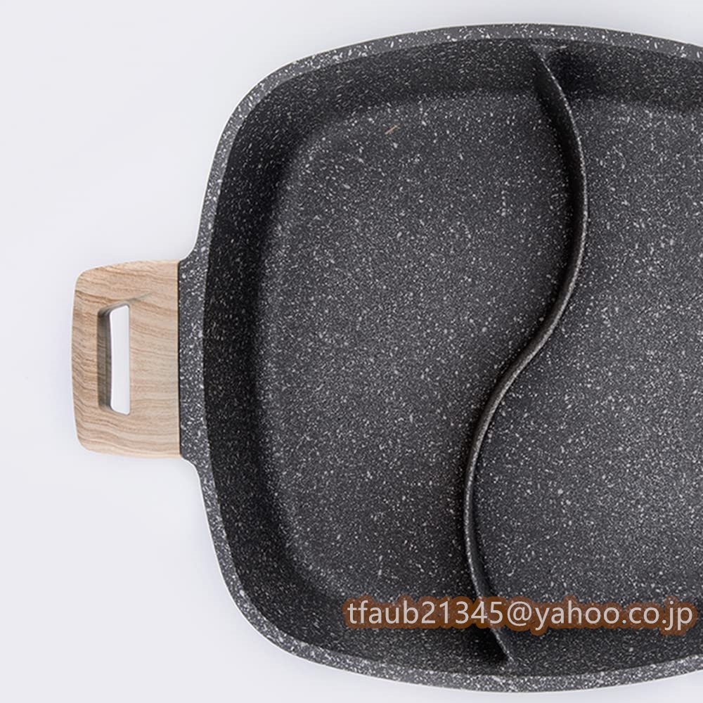 両手鍋 仕切り付き 卓上二食鍋 仕切り鍋 S形鴛鴦鍋 木製の取っ手 IH対応 2種類の味を同時に楽しめる 同時に調理可能 鍋パーティに最適