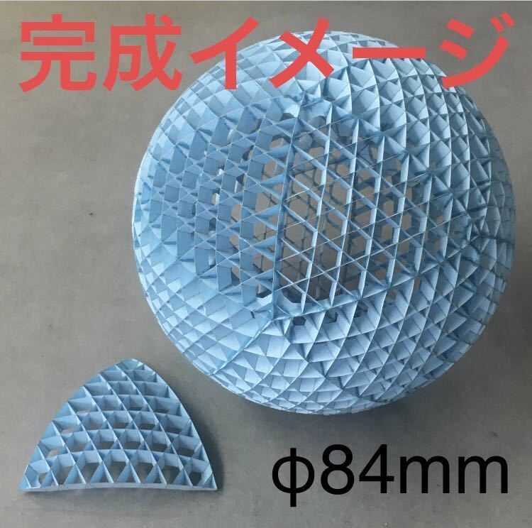 球面を正20面体分割した正三角形のパーツ20個で格子状のボールを作るペーパークラフトキットです。