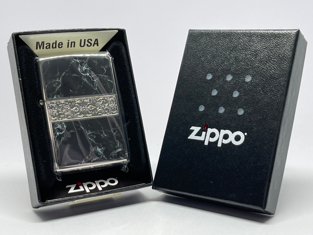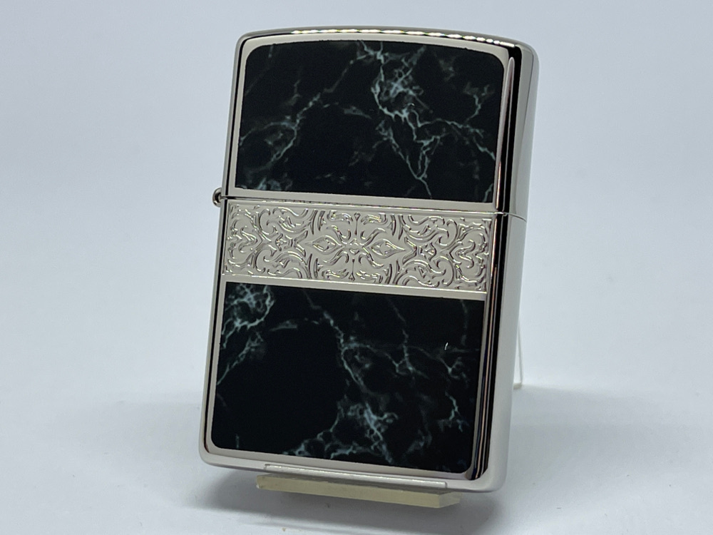 ZIPPO[ジッポー]両面加工 ARABESQUE MARBLE / ブラックシルバー 2S-BKM | |||||||||||