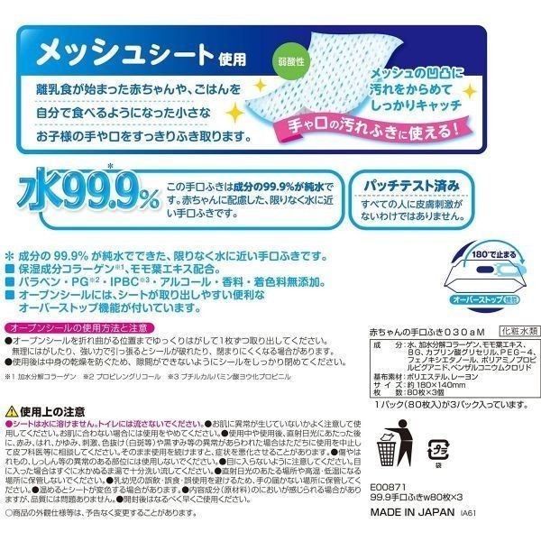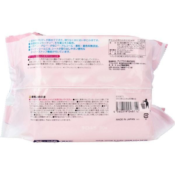| 成分の99.9%が純水でできた限りなく水に近いメッシュタイプの手口ふきです 「コラーゲン」と「モモ葉エキス」の保湿成分をダブル配合しお肌を健やかに保ちます パラベン・PG・IPBC・アルコール・香料・着色料無添加でお肌にやさしい弱酸性です 日本製で生産から梱包まで国内工場で徹底管理されておりパッチテスト済み ※このシートは水に溶けませんのでトイレには流さないでください 【商品詳細】 シートサイズ:約180mmX140mm 個装サイズ:180mmX155mmX100mm 個装重量:約875g 内容量:80枚X3個入 成分:水、加水分解コラーゲン、モモ葉エキス、BG、カプリン酸グリセリル、PEG-4、フェノキシエタノール、 ポリアミノプロピルビグアニド、ベンザルコニウムクロリド 基布素材:ポリエステル、レーヨン製造国:日本 発売元:レック株式会社 JANコード:4560319048712 【オープンシールの使用方法と注意】 ・オープンシールを折れ曲がる位置までゆっくりはがして1枚ずつ取り出してください。 無理にはがしたり、強い力で引っ張るとシールが破れたり、閉まりにくくなる場合があります。 ・使用後は中身の乾燥を防ぐため、隙間ができないようにシールをしっかり閉めてください。 |