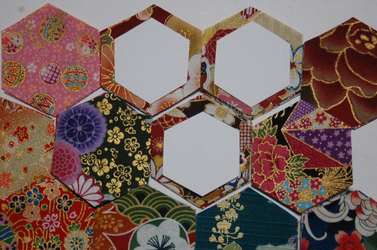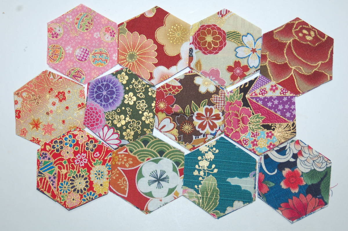 パッチワーク用和風柄六角形出来上がりサイズ22㎜に裁断してます。