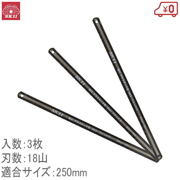 SK11 弦鋸の替刃 塩ビ用 18山 NO.5 SK-3F 3枚 250mm 塩ビ プラスチック 切断 のこぎり