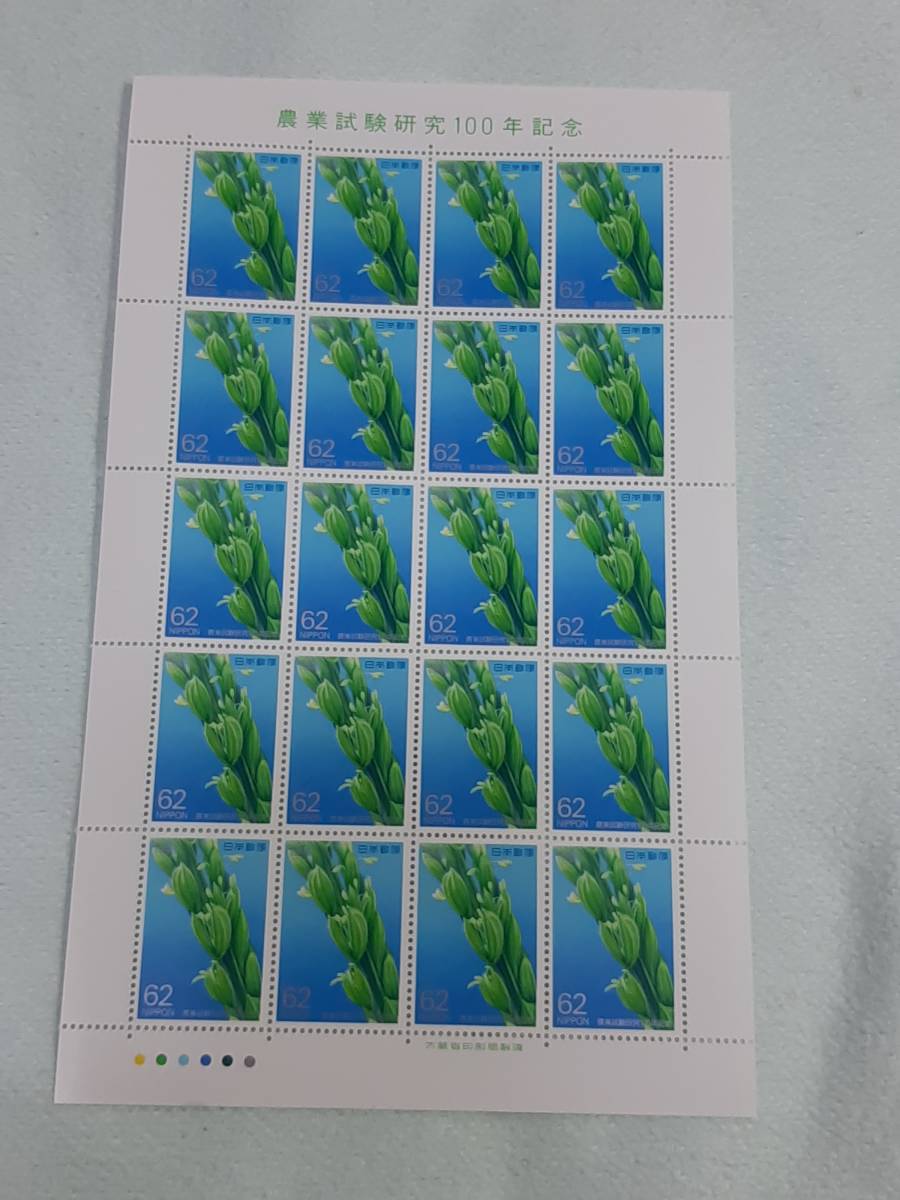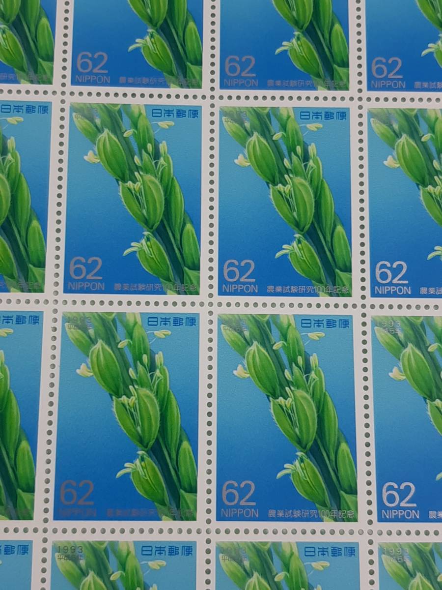 農業試験研究100年記念 1993年 平成5年 切手シート1枚です。