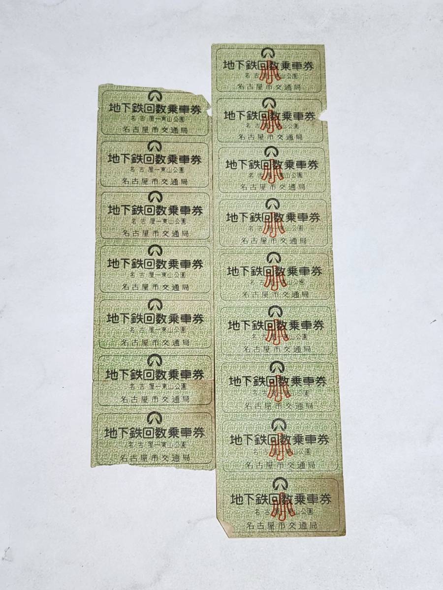 昭和レトロ 名古屋市交通局 名古屋ー東山公園 地下鉄回数乗車券 16枚セット です。古い物ですので汚れや破れがあります。