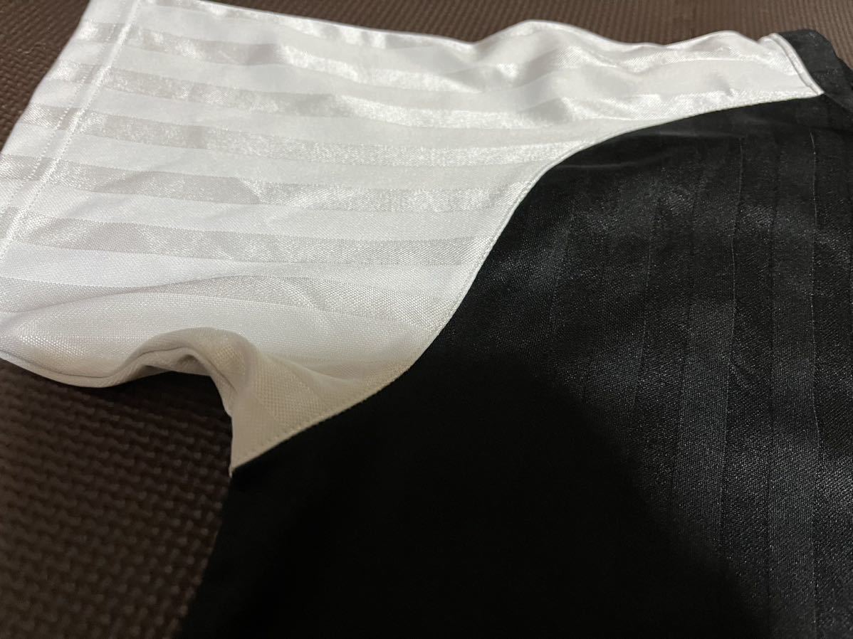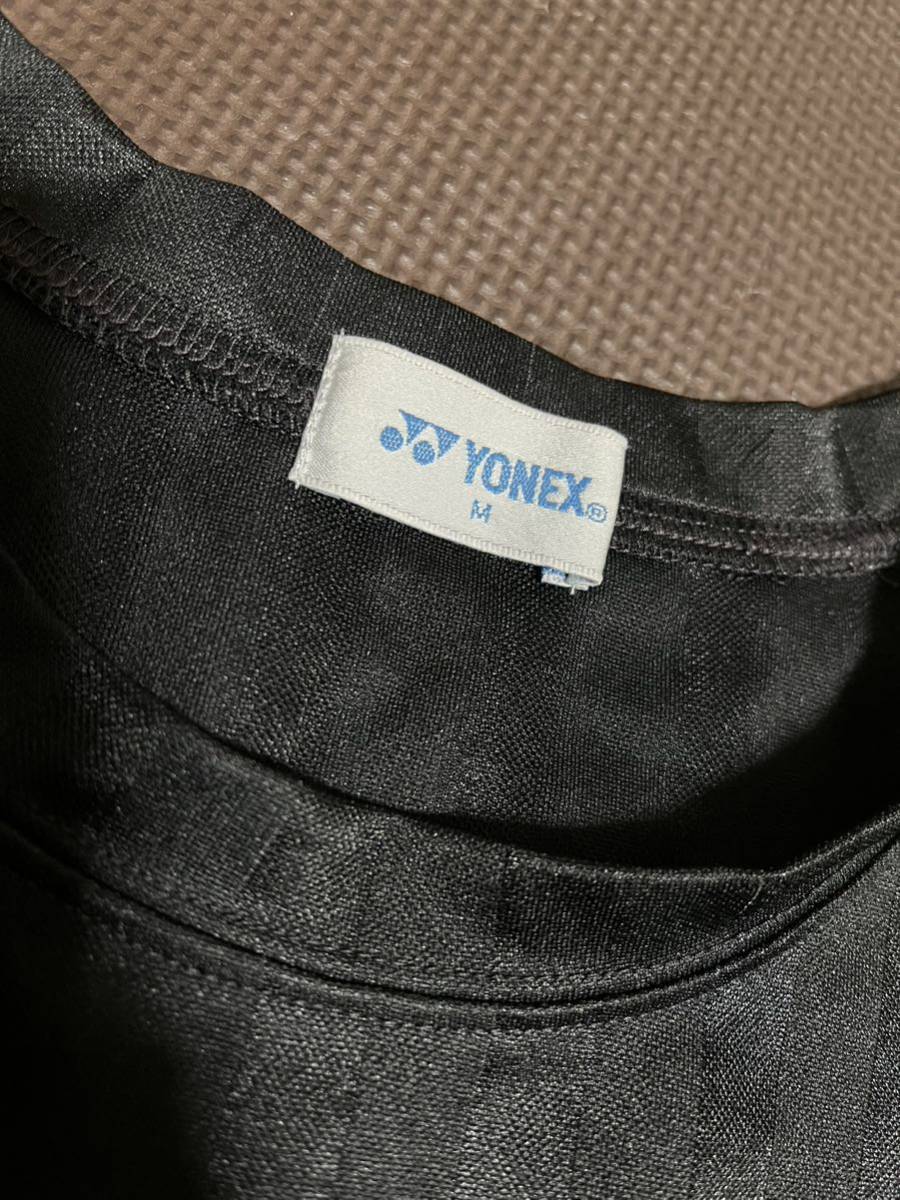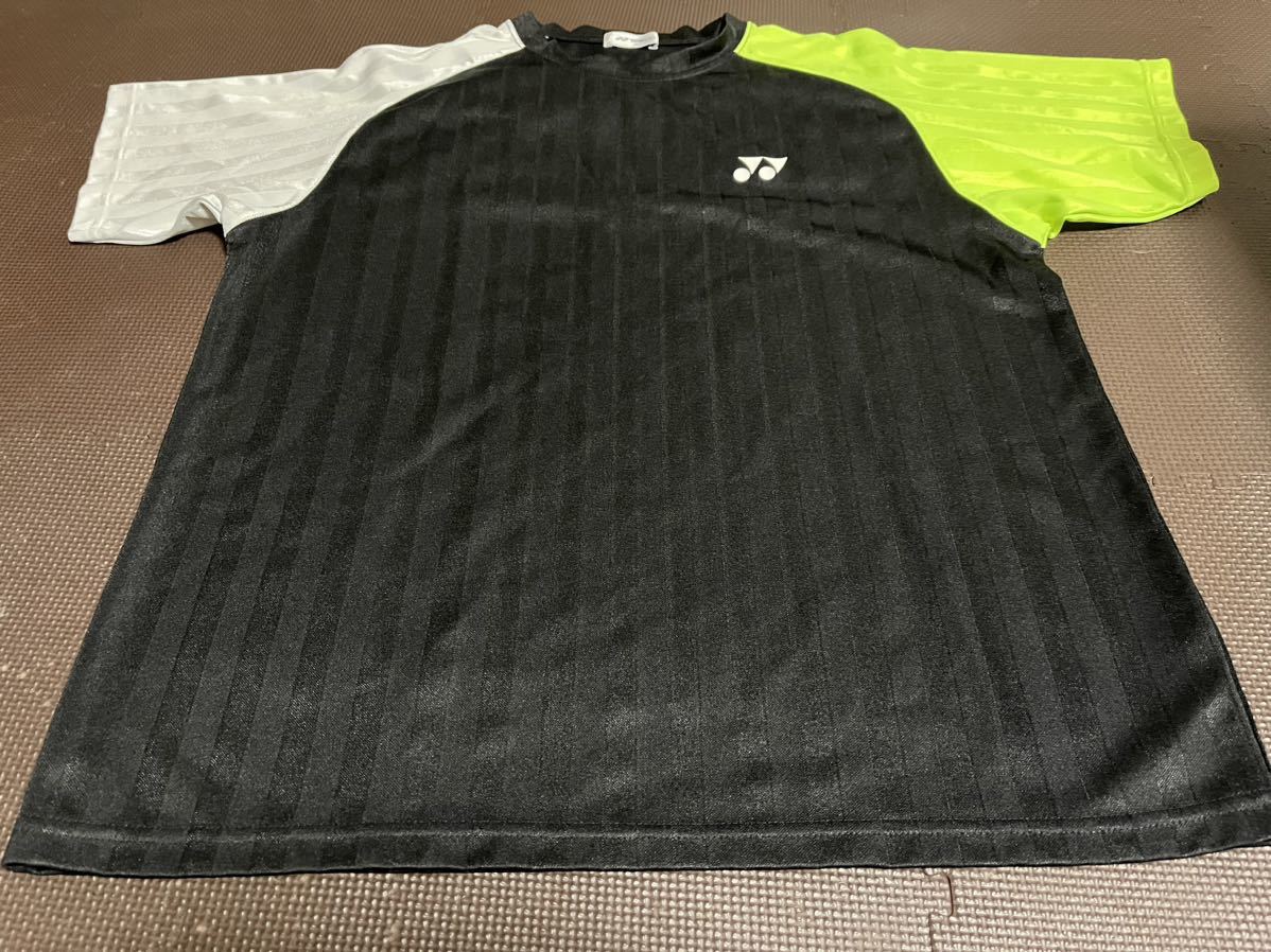 美品YONEX黒ストライプ、白、蛍光色(光沢有り)ロゴ白(バッグロゴ白)半袖ストレッチトップス