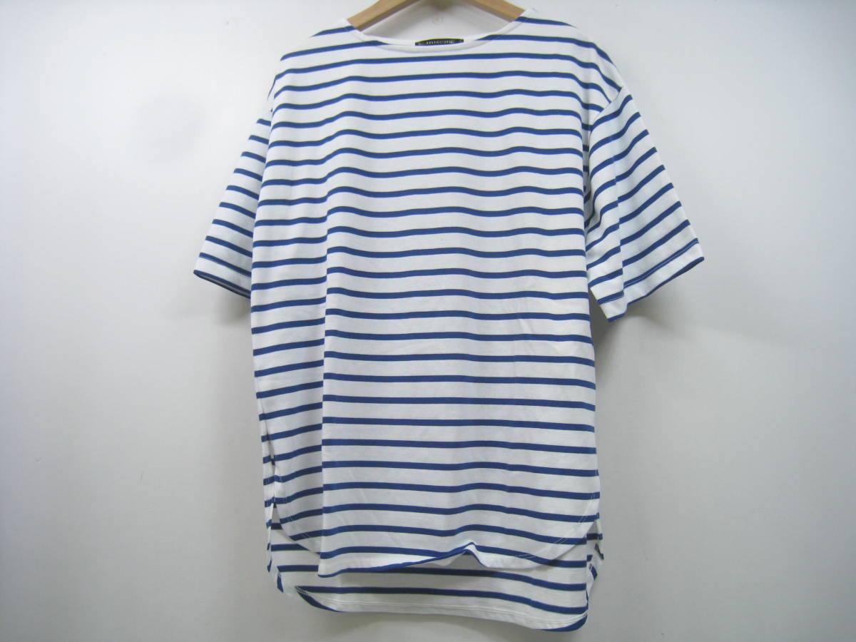 AQUAHISTORY アクアヒストリー ボーダーTシャツ 6分袖 白×青 ホワイト ブルー サイズL