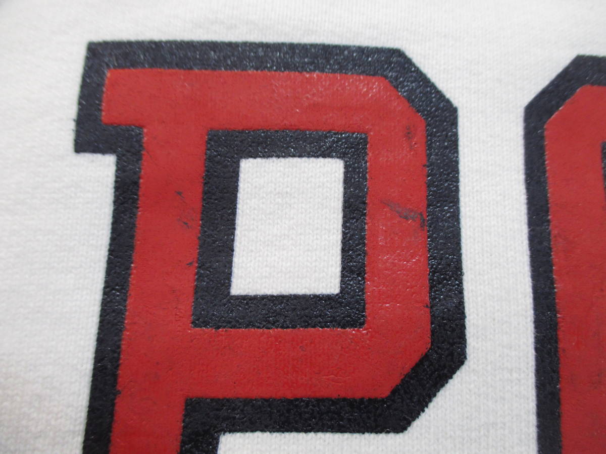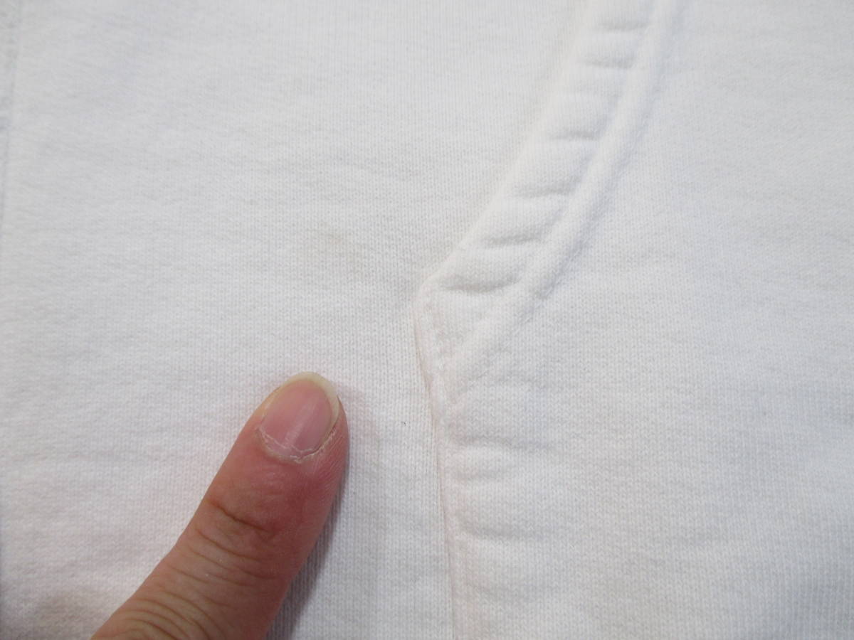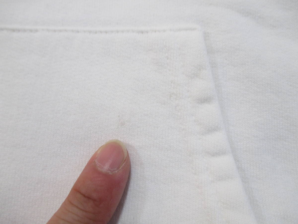 ●程度は、フード紐の欠品、フードの首元に多少の黄ばみ、プリント部分にはプリント移りのような汚れ(画像6)、フロント部分にシミ(画像7,8)が見られます。
