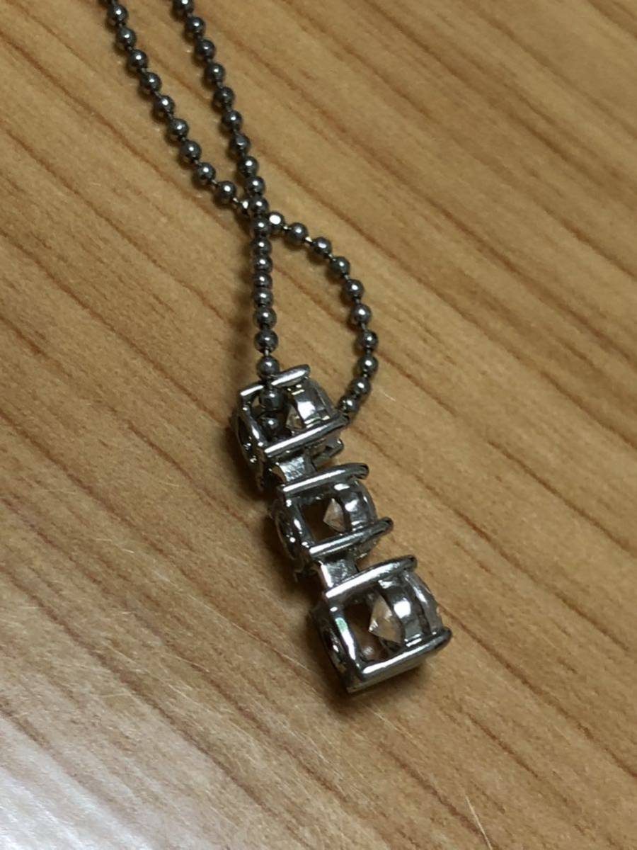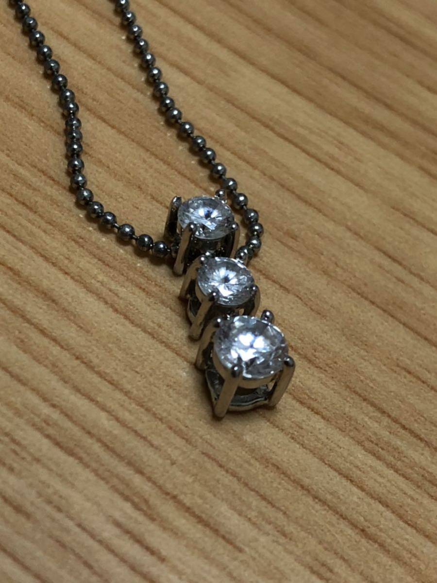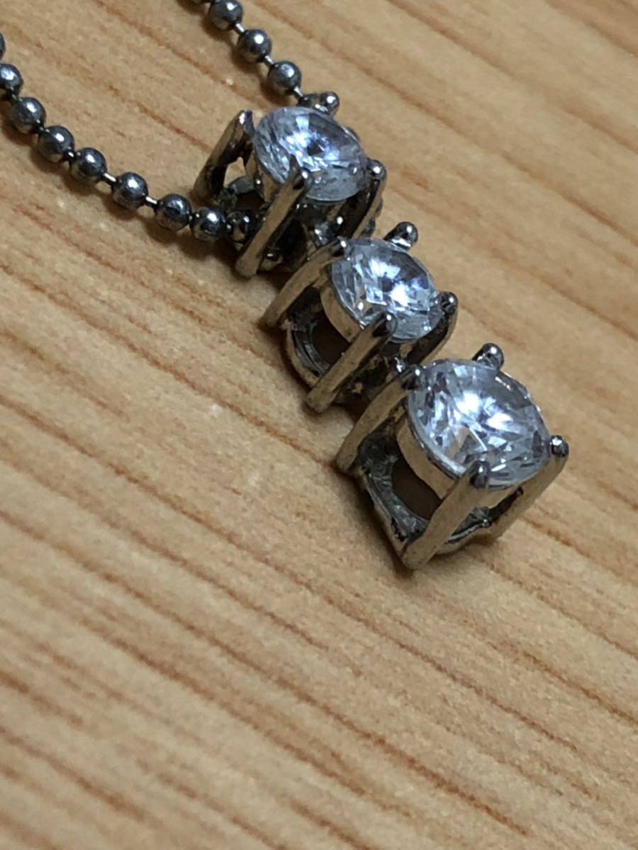 地金が地金なだけに3連の石もダイヤでは無くラインストーンだと思います。