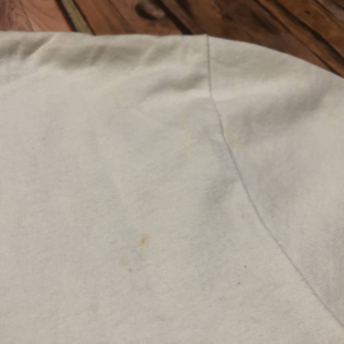全体的に真っ白ではなく他から色移りしたようなオフホワイトの様な色となっています。