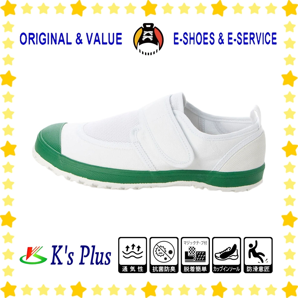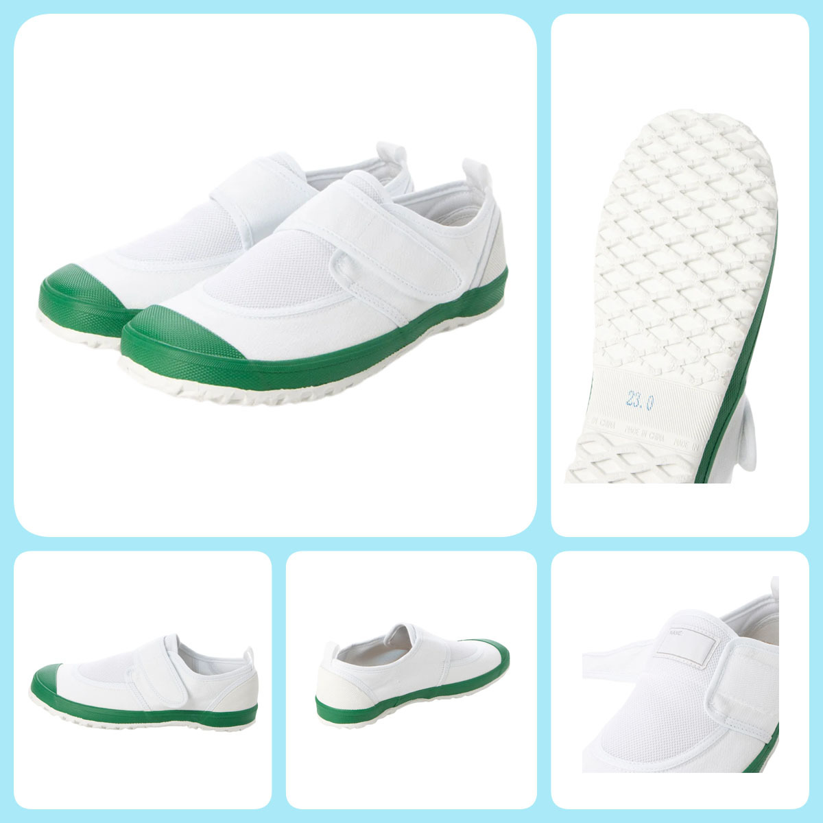 ベルクロ (マジックテープ) タイプのメッシュ上履き。