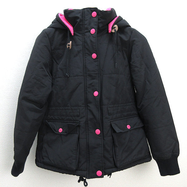 k■ロデオクラウンズ/RODEOCROWNS 裏フリース 中綿フーディジャケット【M】黒/LADIES■240【中古】