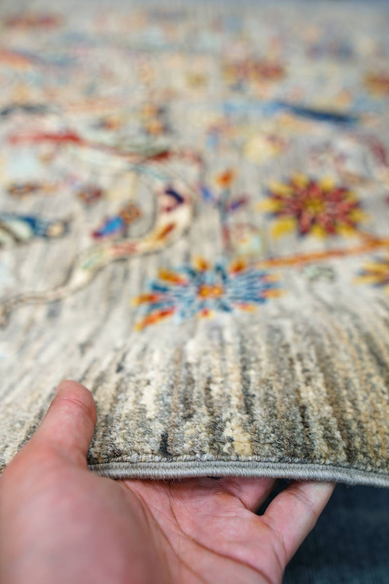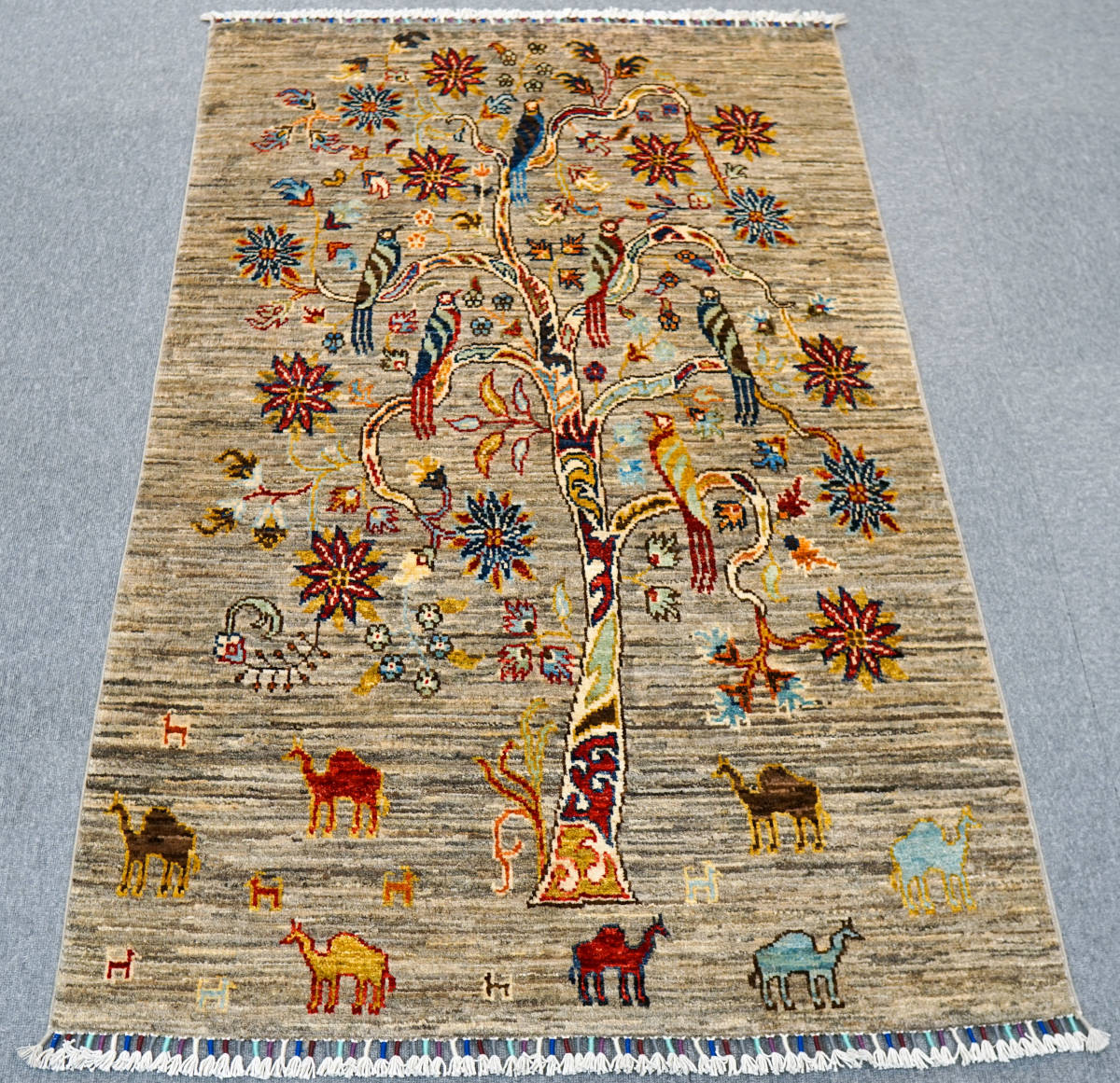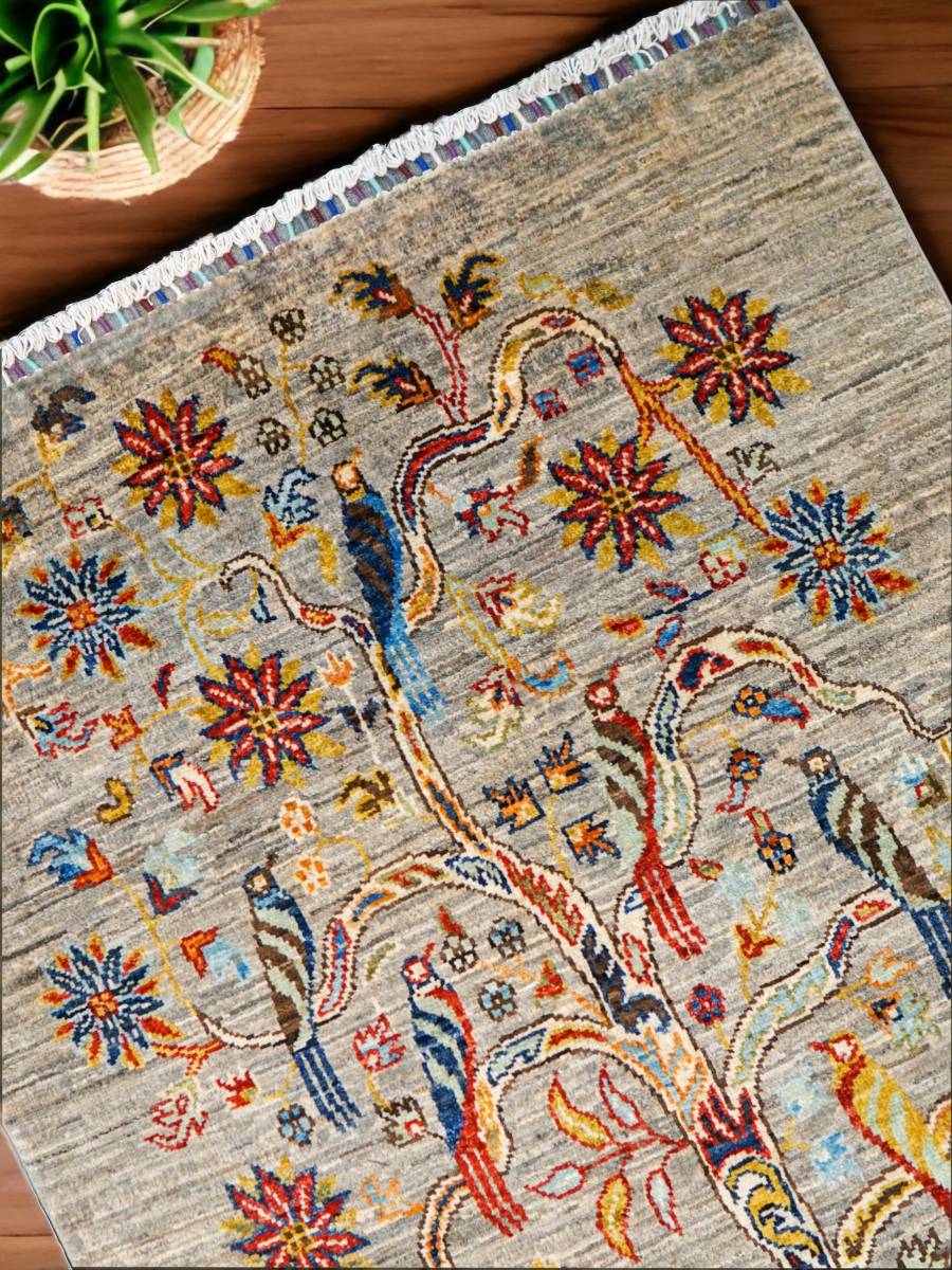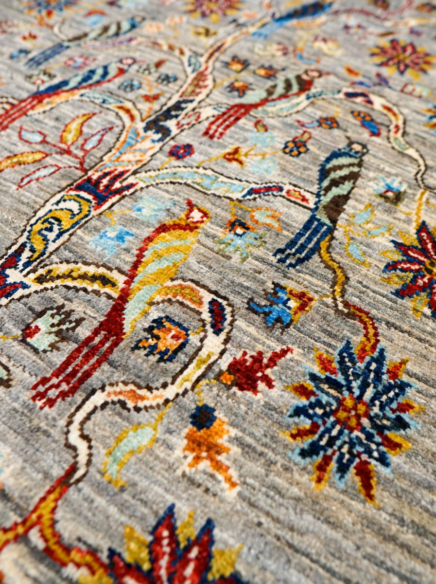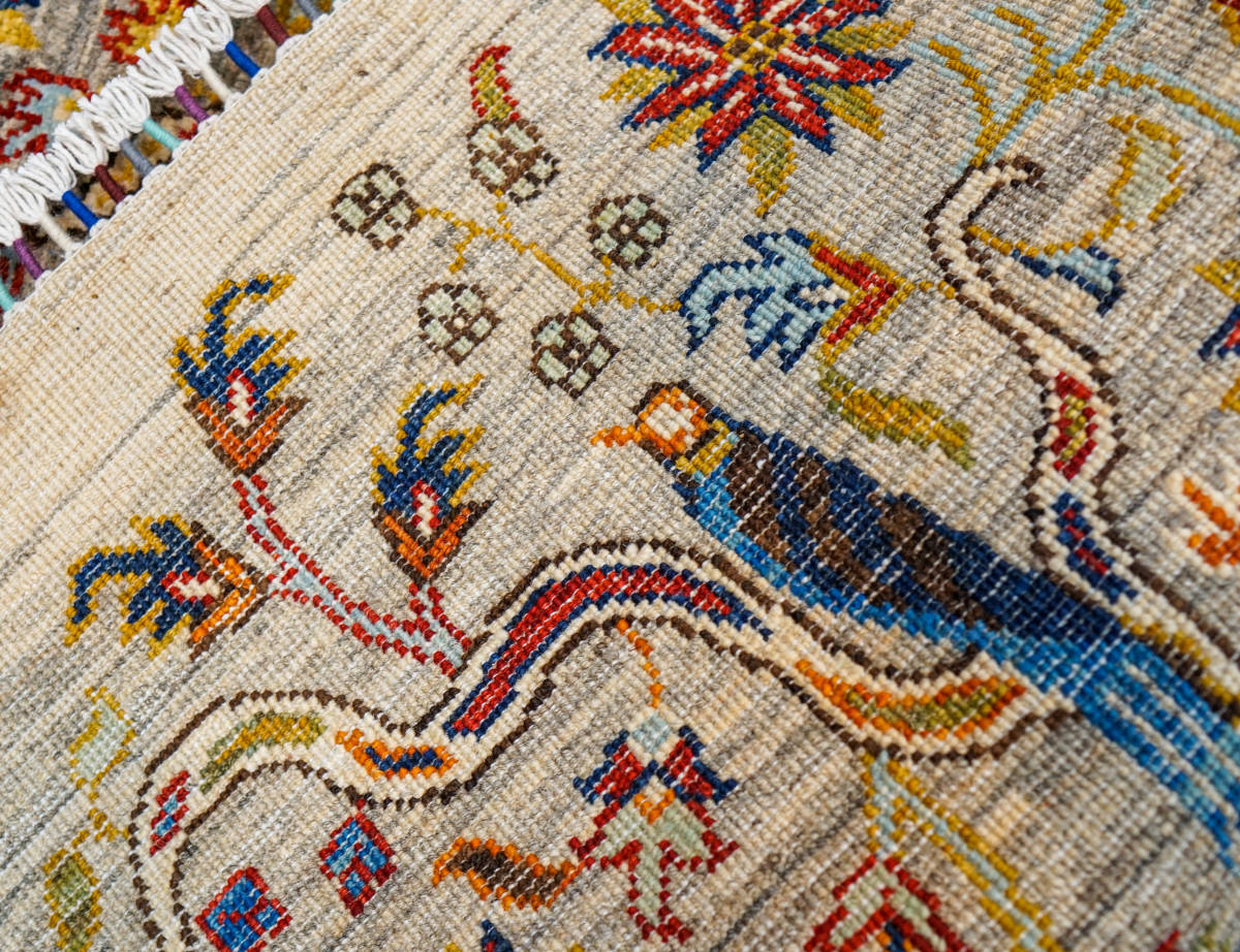手紡ぎウールを使用し、職人の総手織りでつくられたアフガン絨毯です。