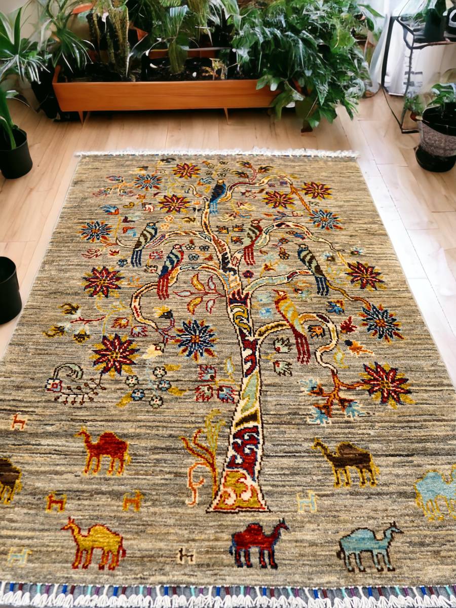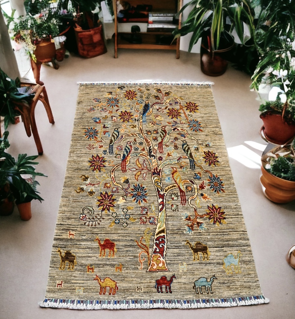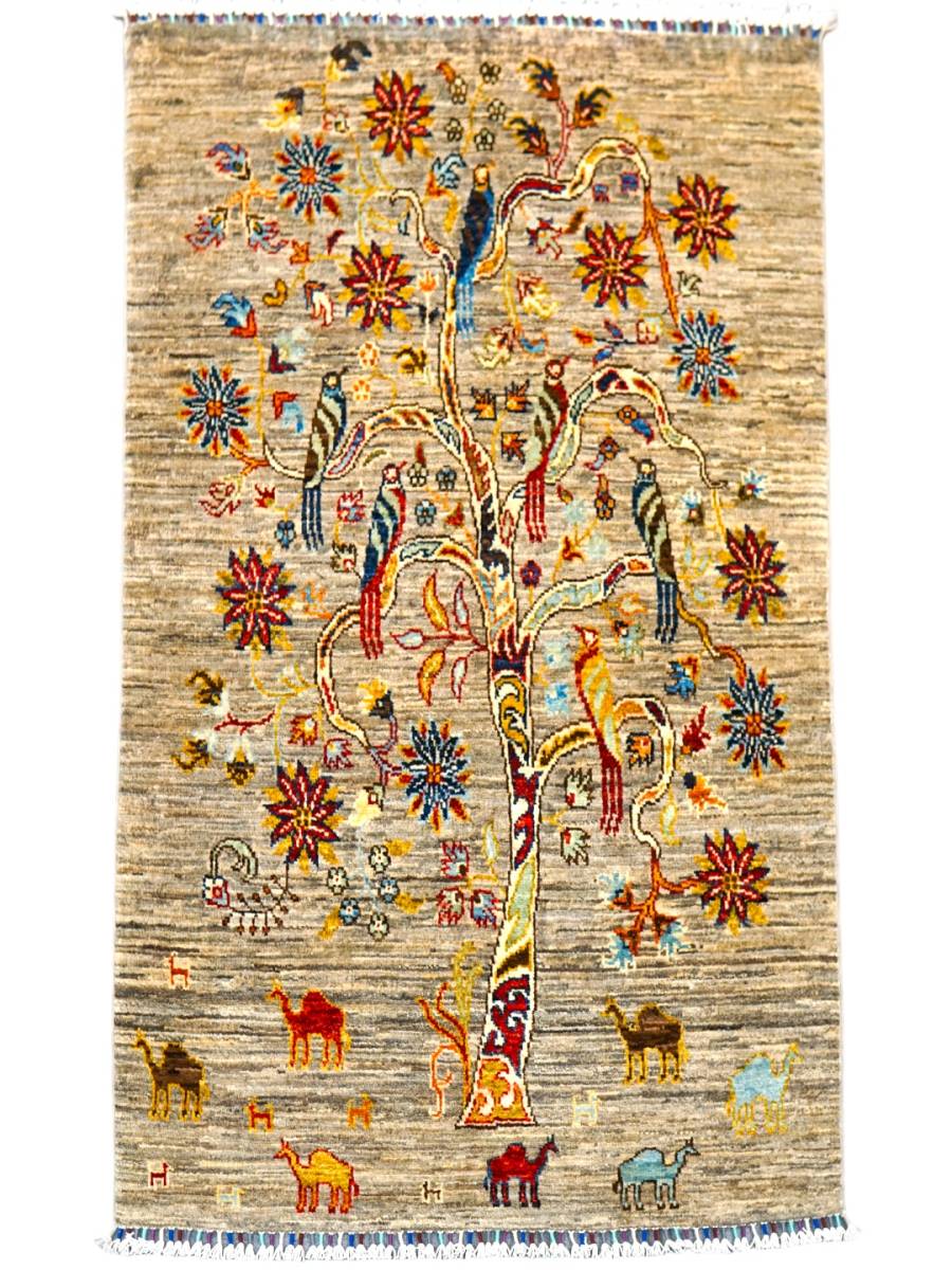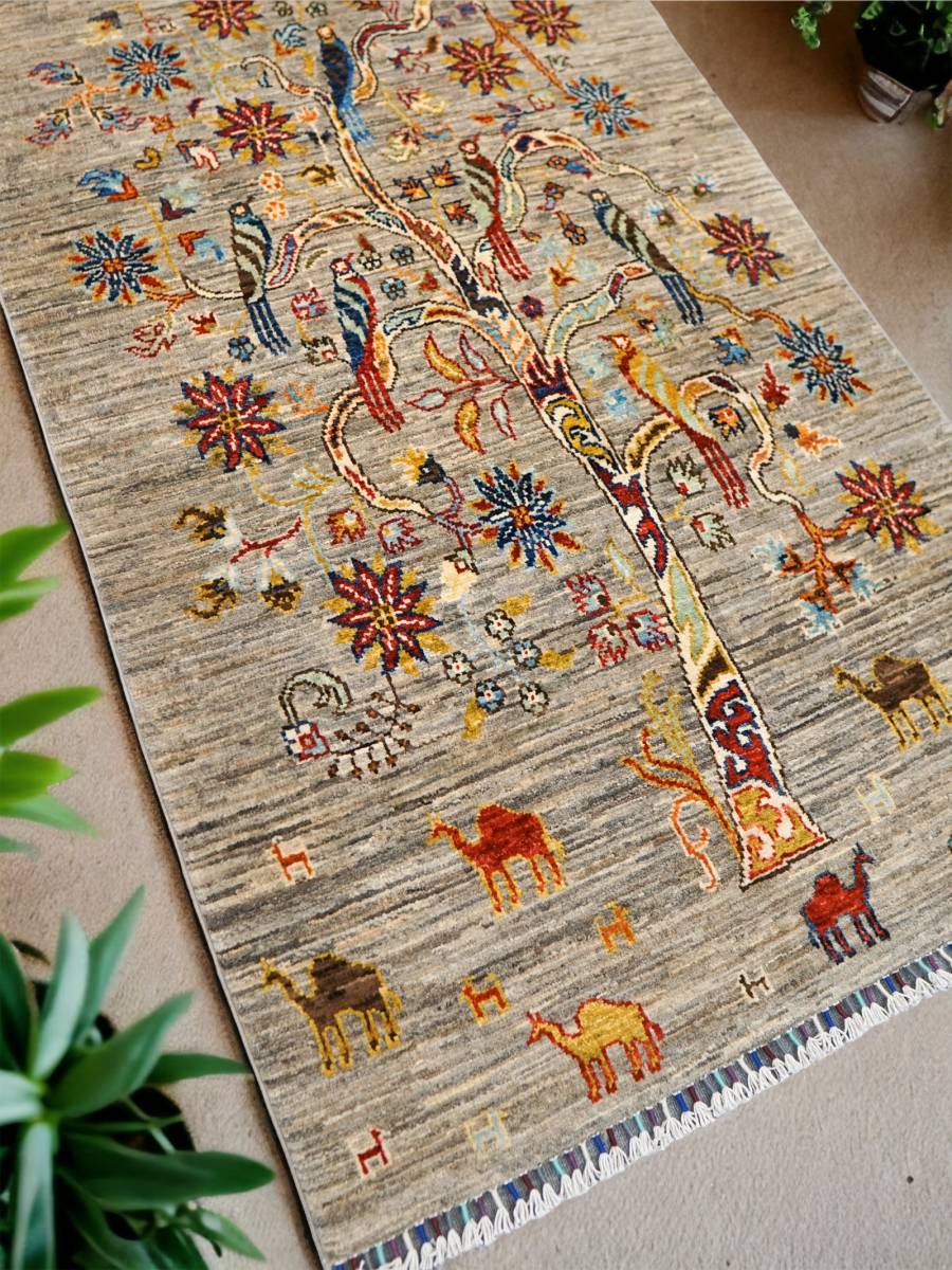中東の風情を感じる鮮やかなカラーコンビネーションと、トライバルなデザインやカラフルなフリンジ(フサ部分)が特徴的なギャッベ。
