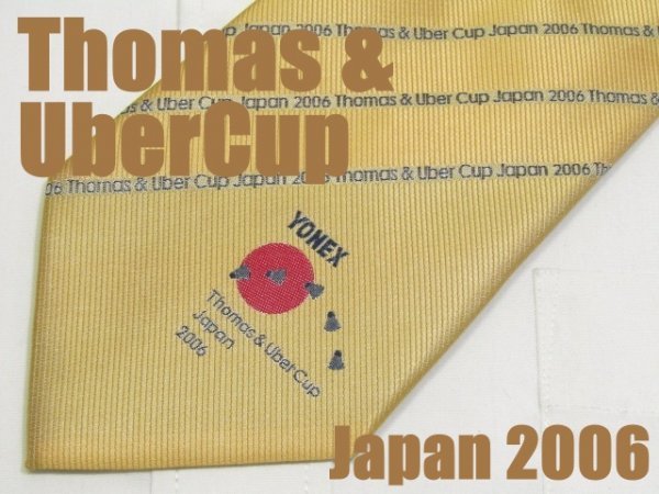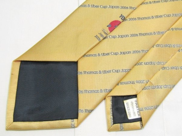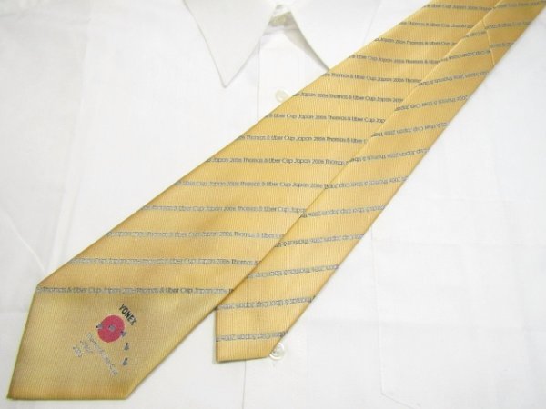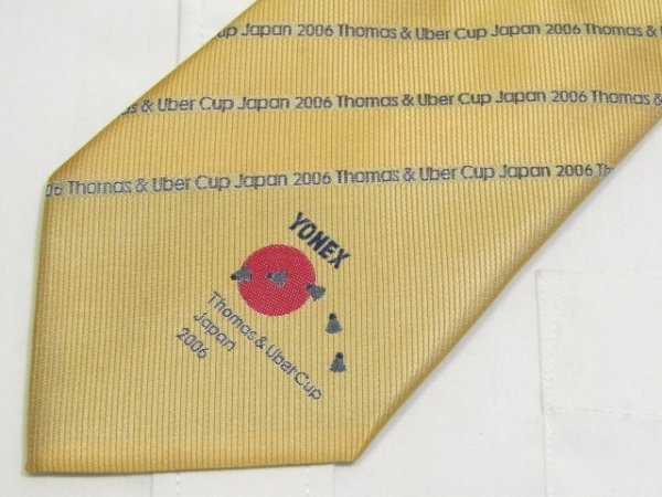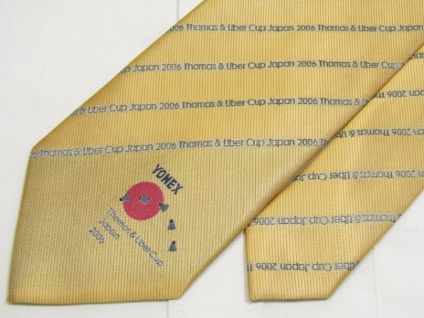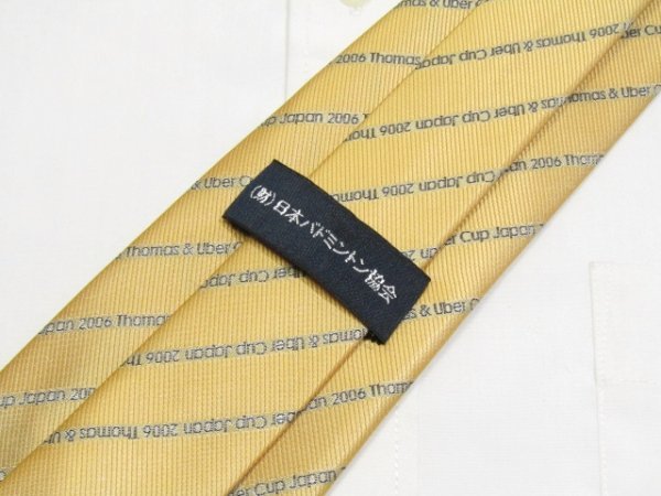 AA 301 日本バドミントン協会 トマス杯・ユーバー杯 Thomas & UberCup Japan 2006 YONEX ネクタイ 黄系 文字ストライプ柄 ジャガード