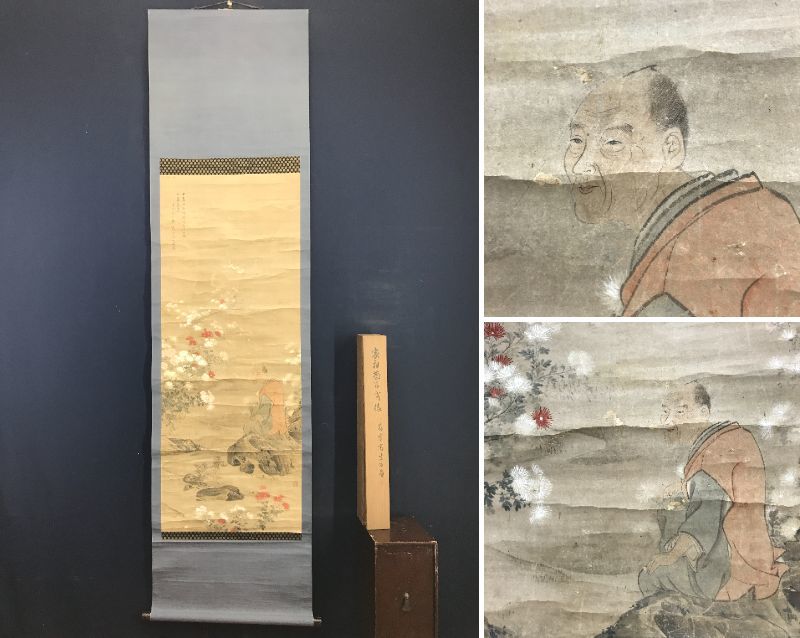 真作/森寛斎/菊翁図/人物図//掛軸☆宝船☆AC-565