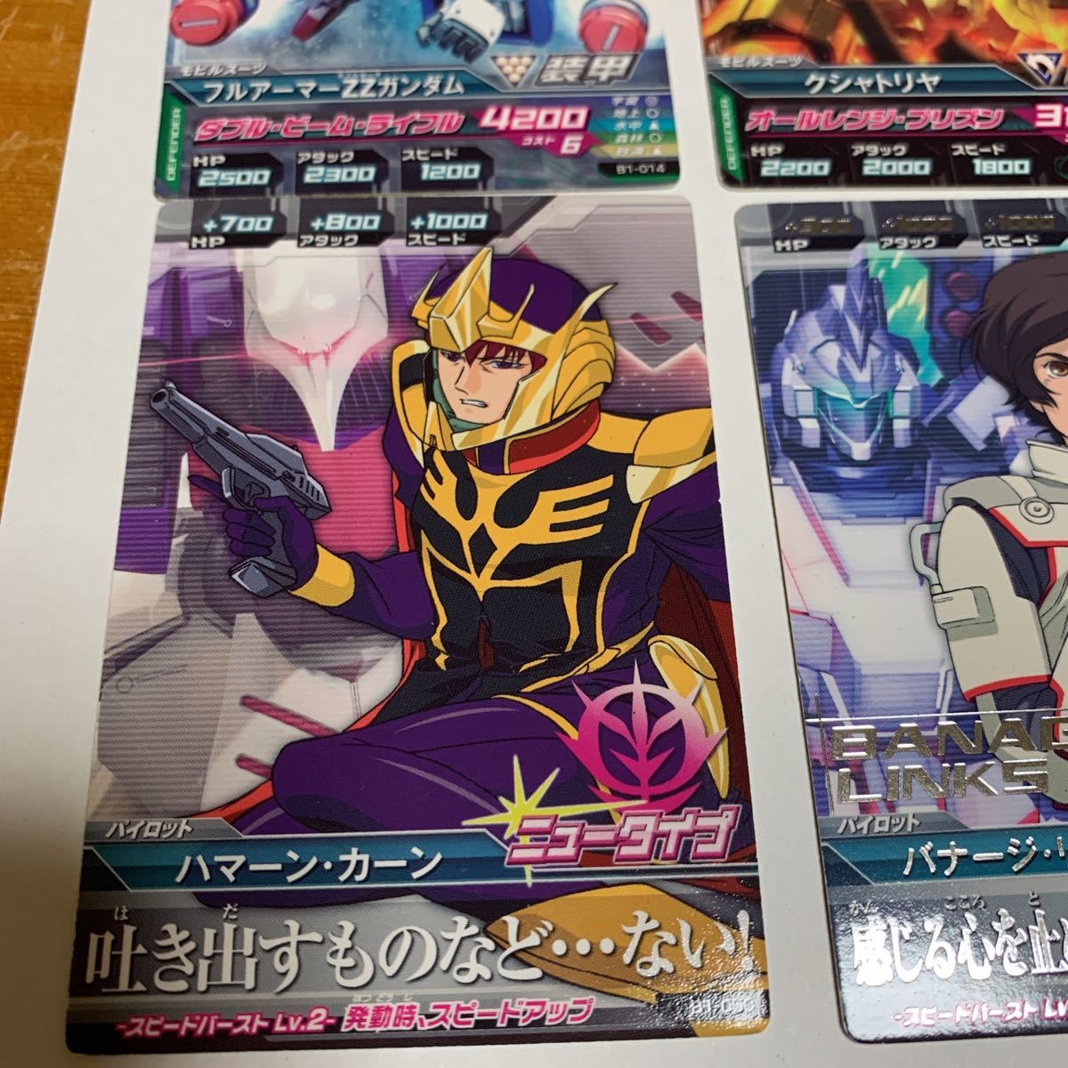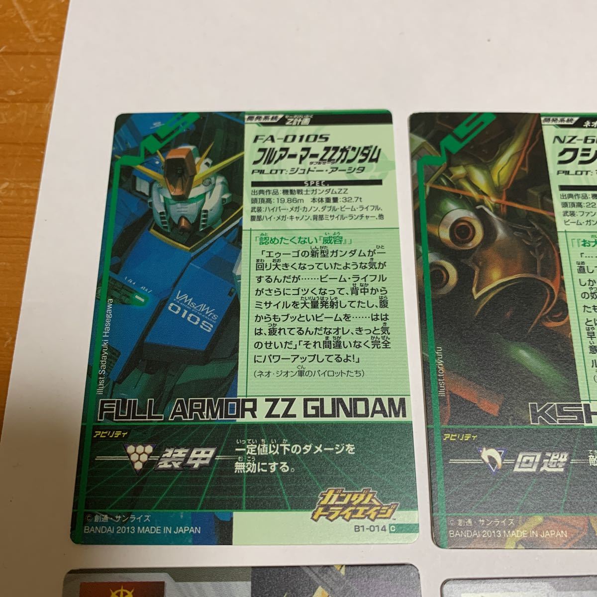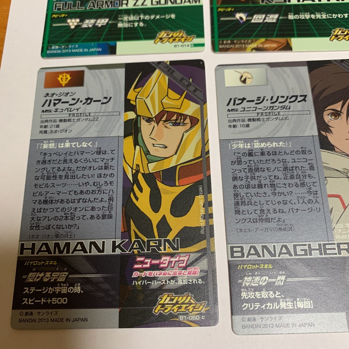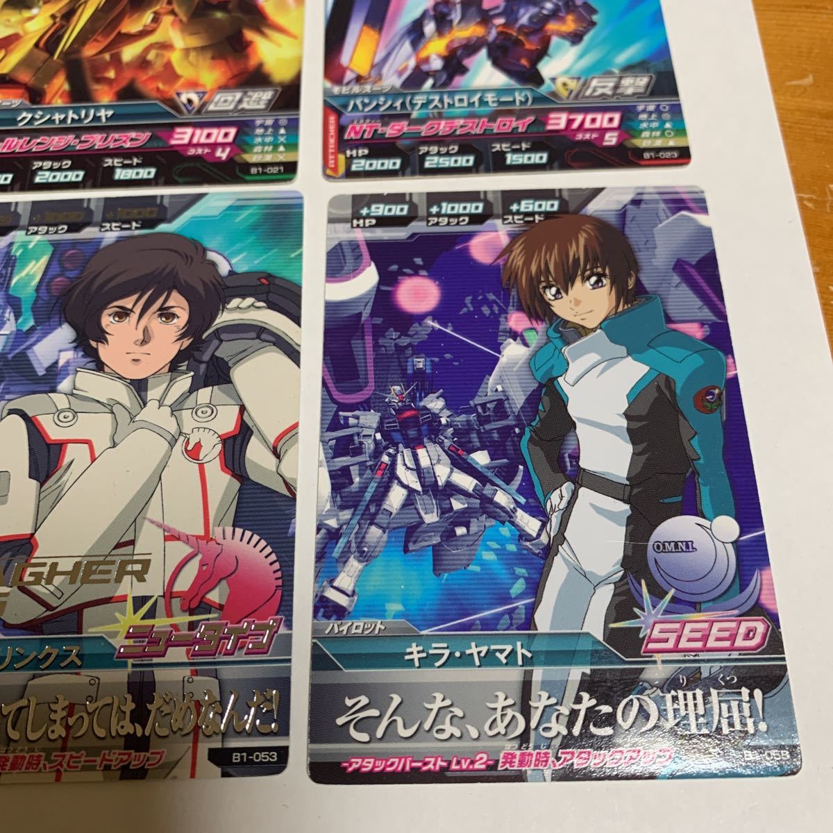 ガンダムトライエイジ B1-058キラ・ヤマト B1-023 バンシィ(デストロイモード)等 6枚セット 2013 未使用 送料無料の出品です。 (自己紹介一読し落札願います。) B1-014 フルアーマーZ Zガンダム B1-021 クシャトリヤ B1-023 バンシィ(デストロイモード) B1-050 ハマーン・カーン B1-053 バナージ・リンクス B1-058キラ・ヤマト 納戸の整理(断捨離)で今後使用予定が ない為出品しました。 衣装ケースに入れて保管してました。