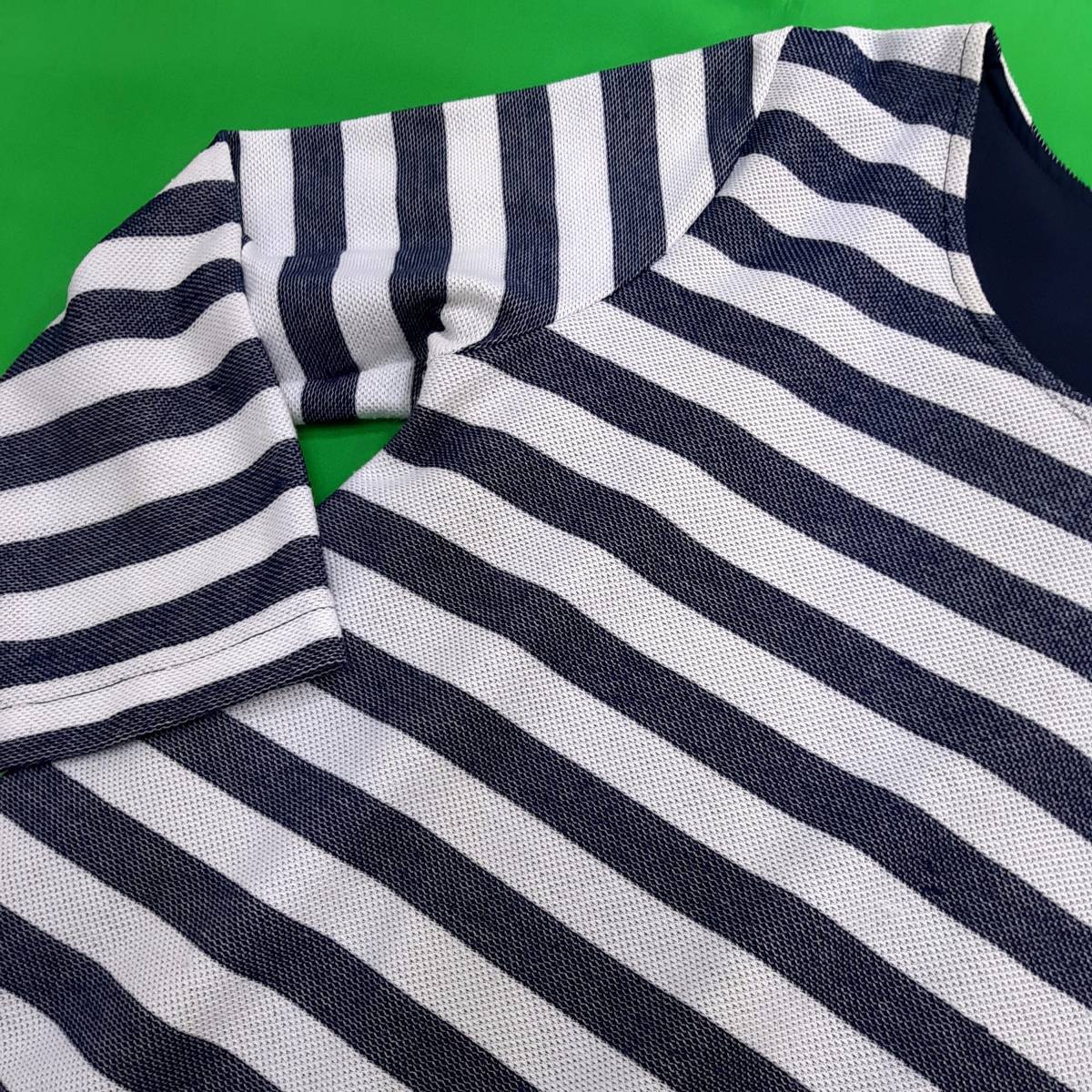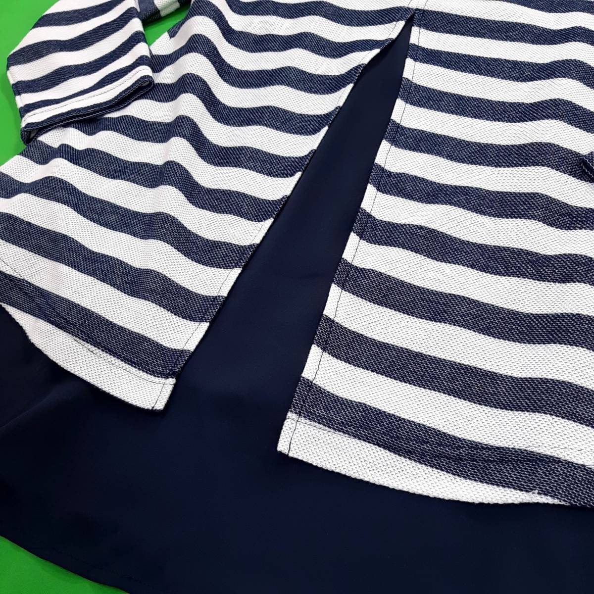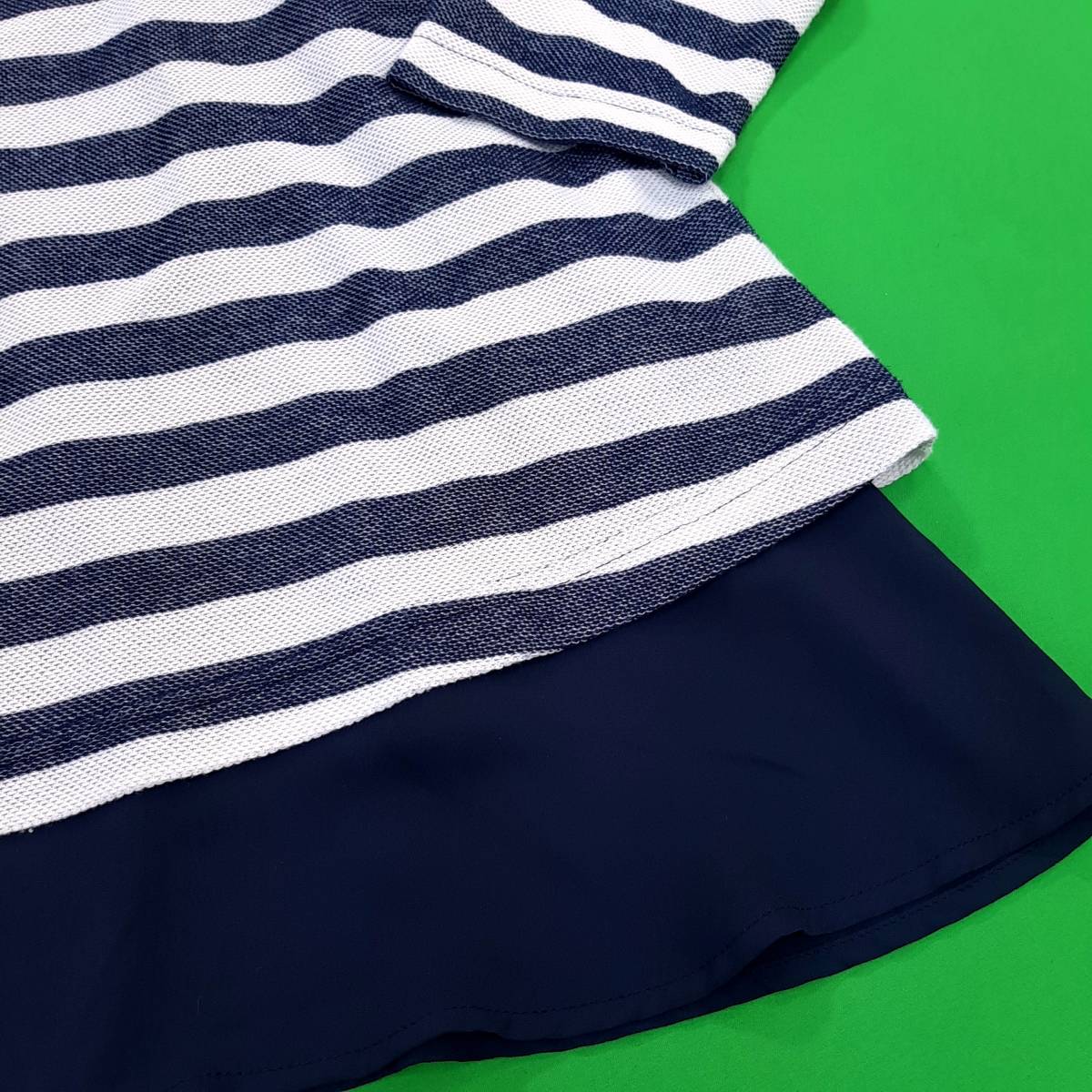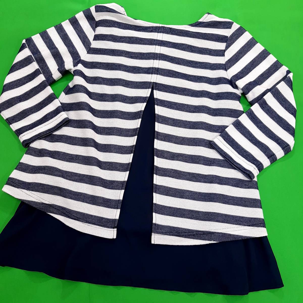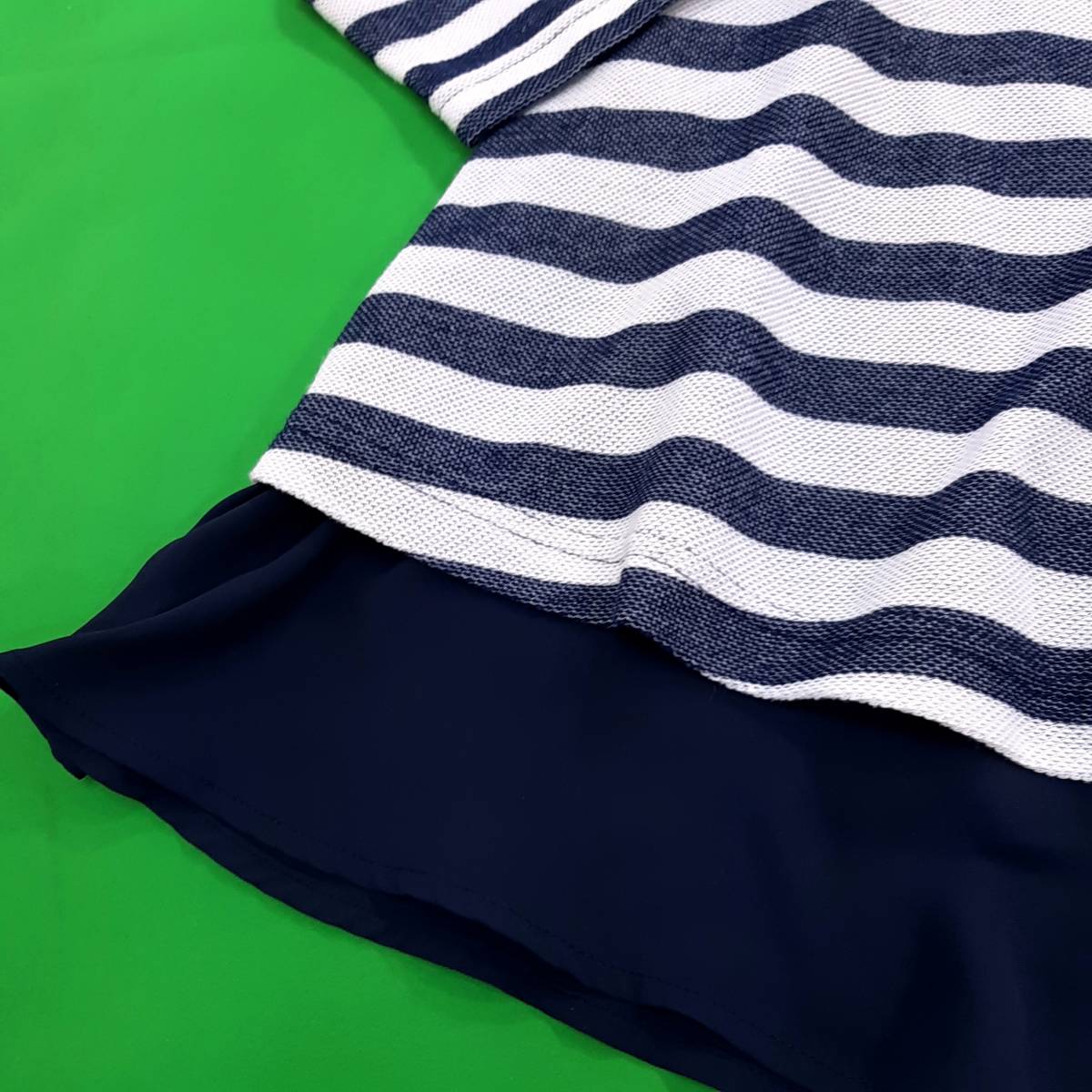 c7★美品 a.v.v standard★送料無料★ボーダー柄 シフォン切替ドッキングデザイン 7分袖カットソー★レディース Mサイズ ネイビー紺色