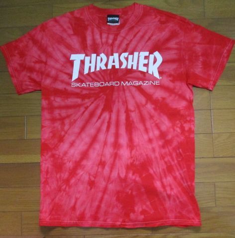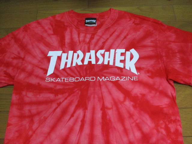THRASHER ダイダイ Tシャツ Mサイズ 赤 デカロゴ スラッシャー スケーター スケボー