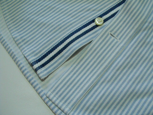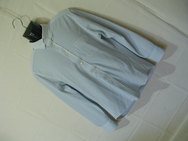 ssy6202 NOLLEY'S 長さ ワイシャツ ブルーグレー×ホワイト ■ ストライプ柄 ■ ボタンダウン シンプル Sサイズ