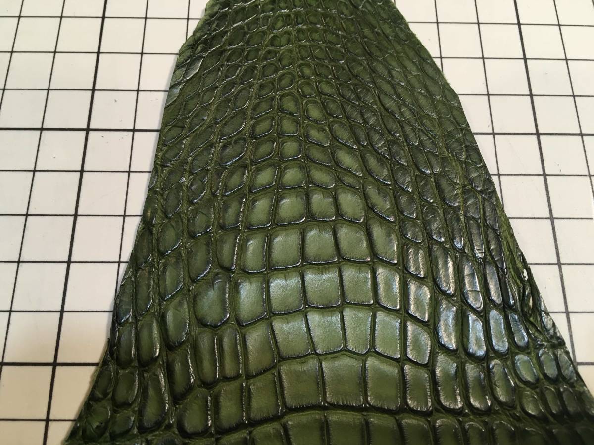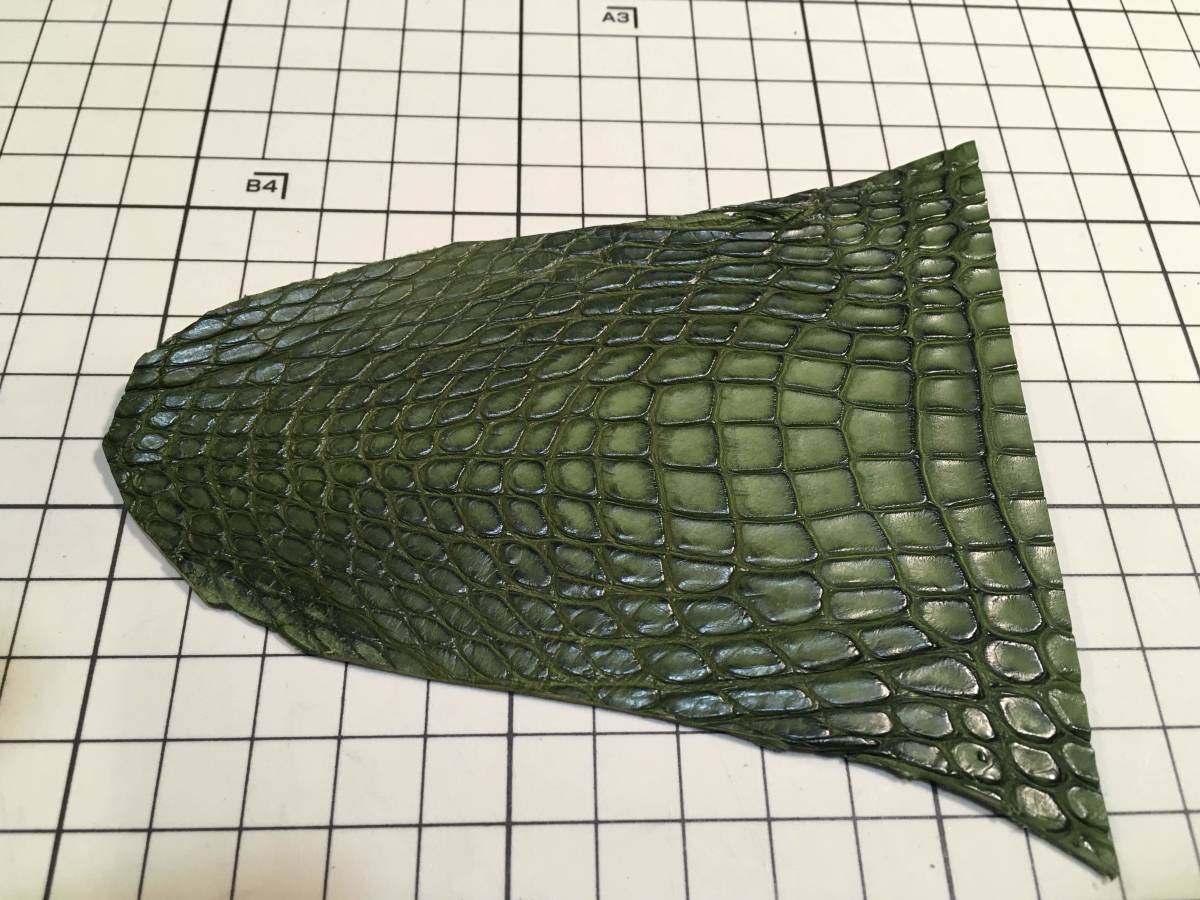 CR3-161★ミリタリーオリーブハンドダイのようなムラ感 経年変化とコバが決まりやすい★最高級アメリカンアリゲーターレザークラフトはぎれ