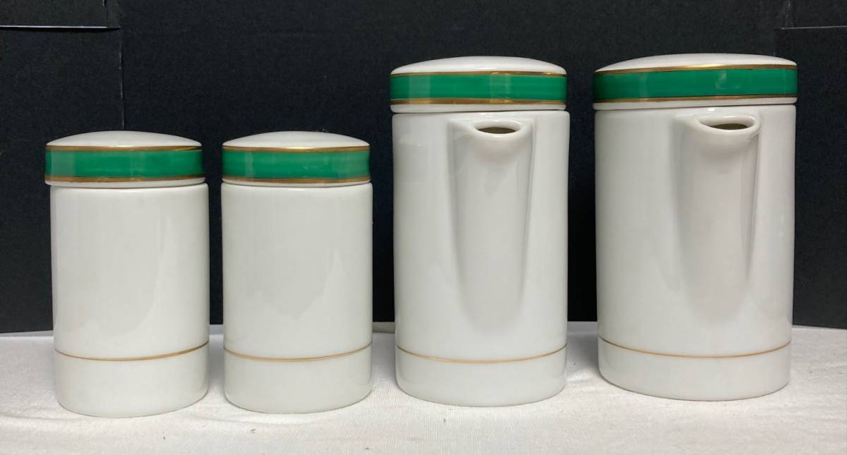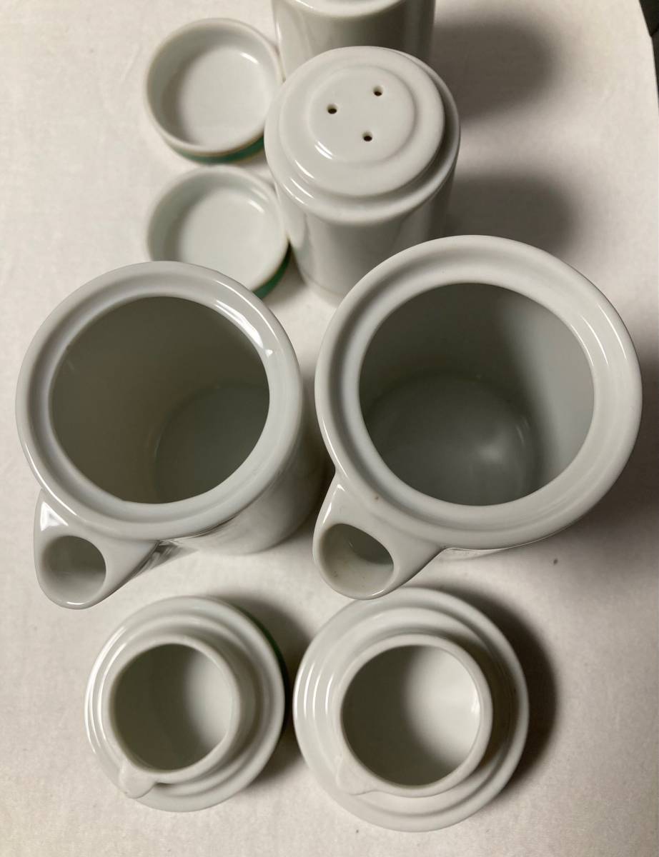 未使用 たち吉 Tachikiti レトロヴィンテージ AdamEve アダムアンドイブ ゴールドライン :醤油・ソース差し 塩・胡椒 調味料入れ 4点セットの出品です。