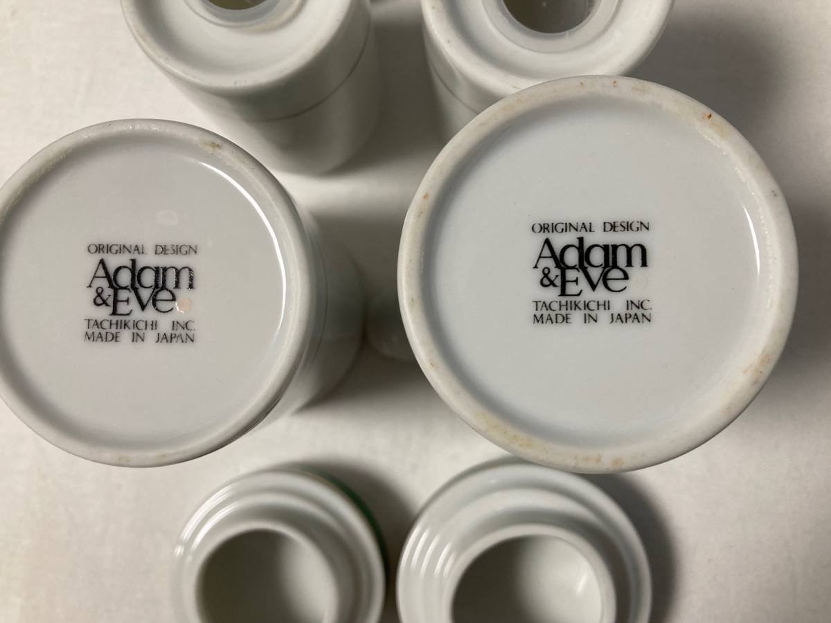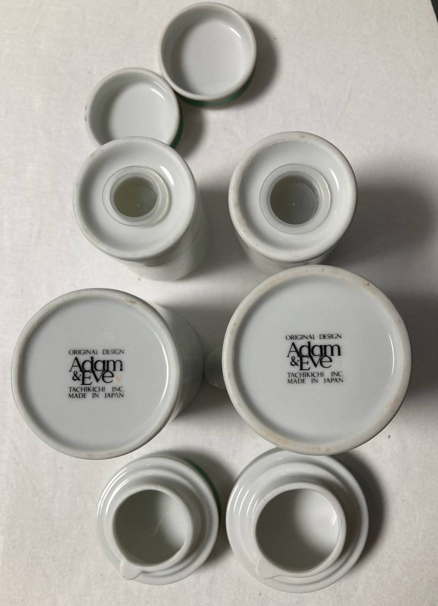 未使用 たち吉 Tachikiti レトロヴィンテージ Adam&Eve ゴールドライン :醤油・ソース差し 塩・胡椒 調味料入れ 4点セット 1381