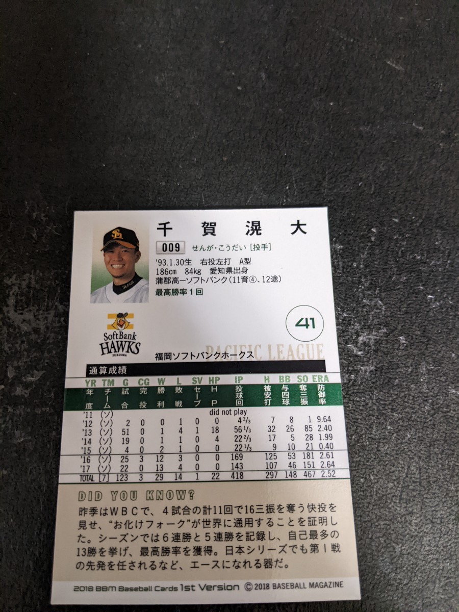 即決★BBM2018 福岡ソフトバンクホークス 千賀滉大
