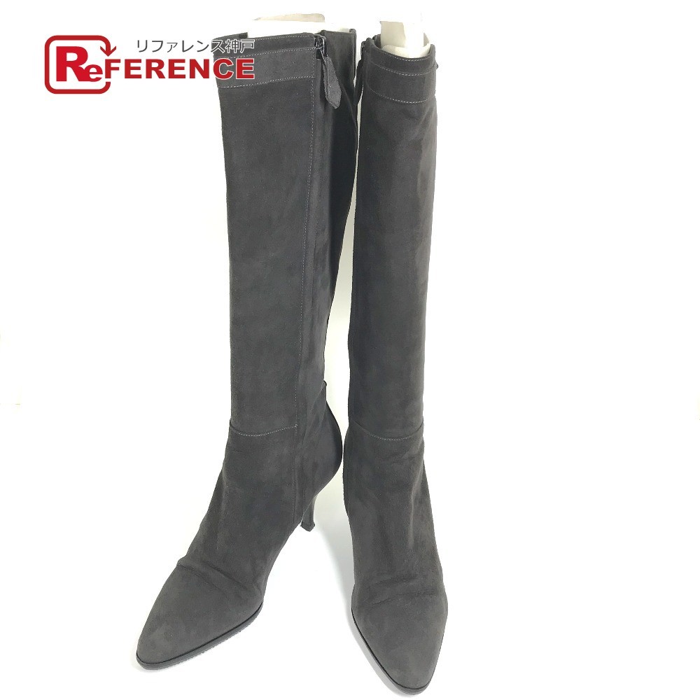 HERMES エルメス ヒール ロングブーツ ブーツ スエード ブラック ブラック レディース【中古】